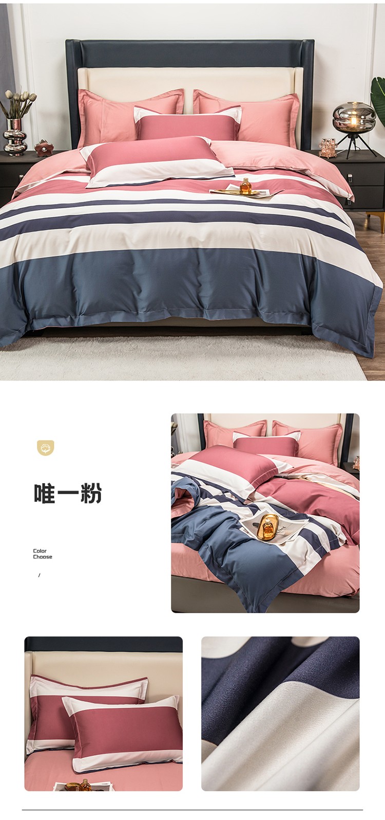 商品名称:品乐2023新100支云锦臻丝高清数码长绒棉四件套 唯 一粉