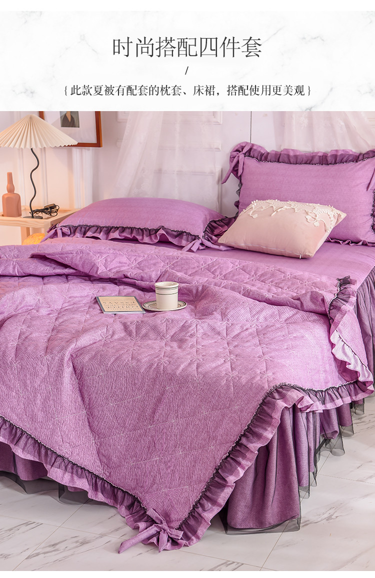 商品名称:芭比蔓家纺 2024新款床裙款夏被四件套 优雅紫