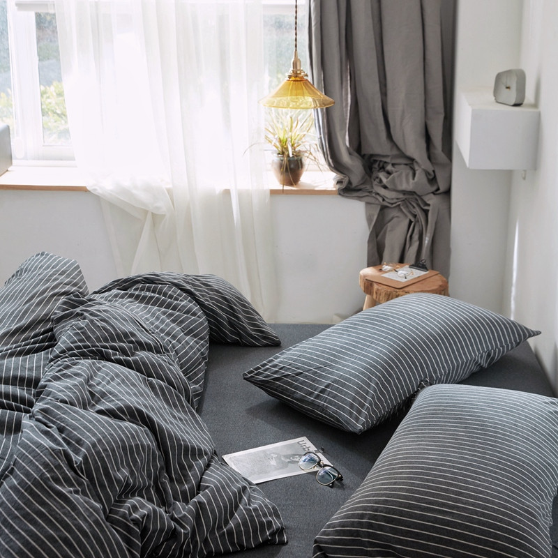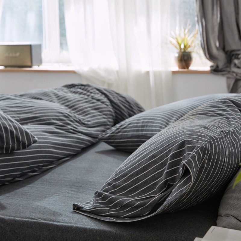 当前位置: 91家纺网 > 商品网购 > 床品套件 > 四件套 > 针织棉四件套 > 华超针织 2021新款针织四件套 黑白细条