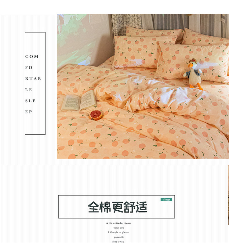 当前位置: 91家纺网 > 商品网购 > 床品套件 > 四件套 > 全棉普通四件套 > 感遇家纺 2020新款全棉小清新卡通四件套新花色 水嫩蜜桃