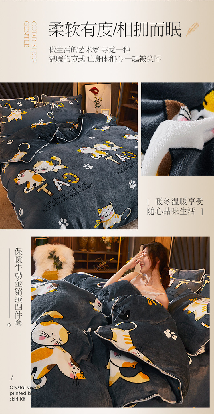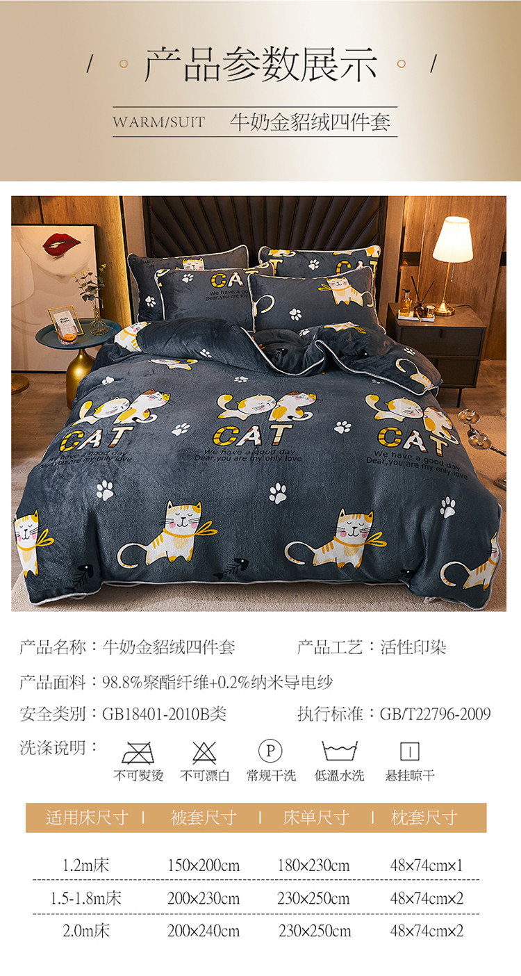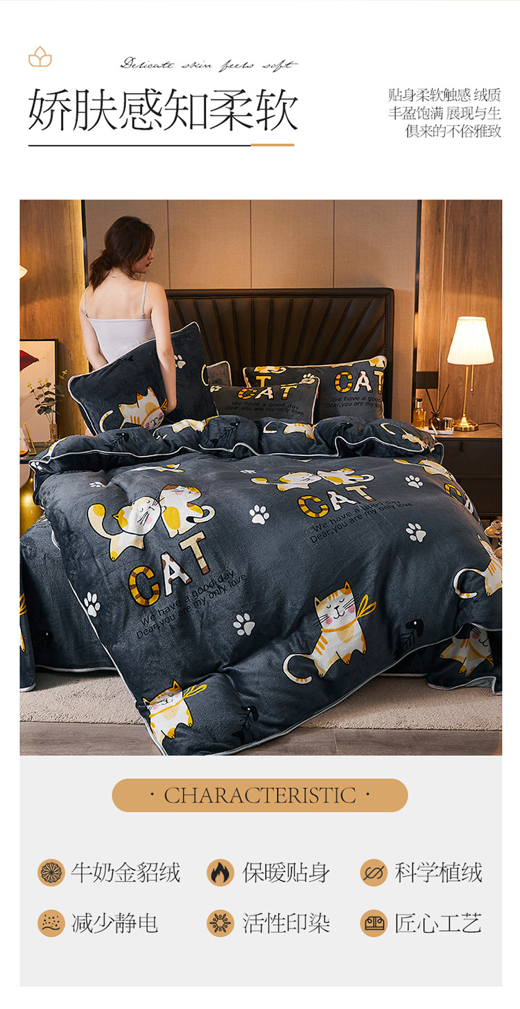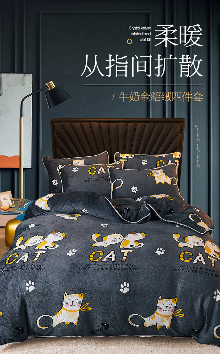 商品名称:迷仙巢 2020新款牛奶金貂绒四件套 猫咪