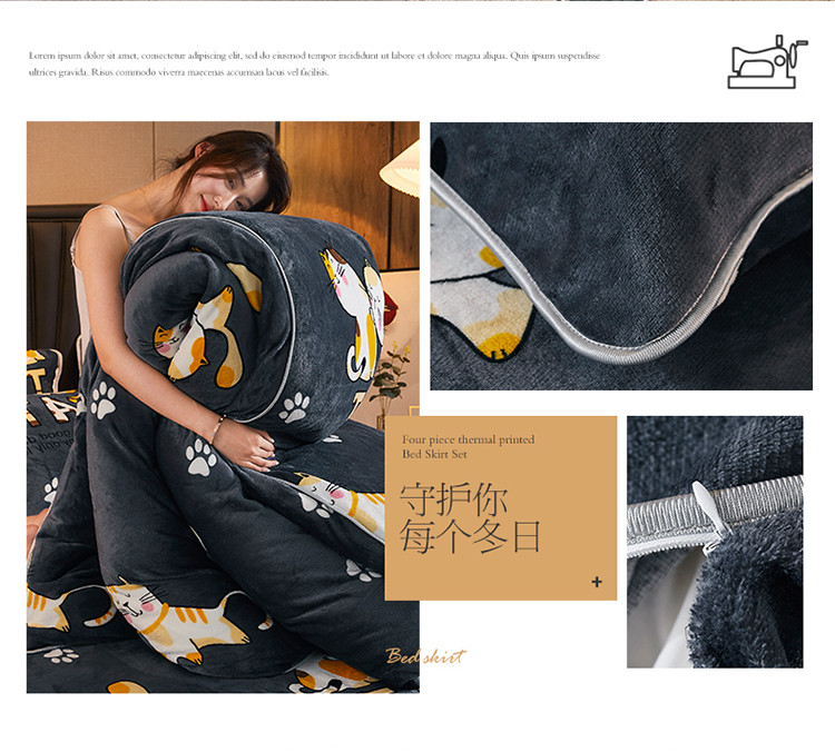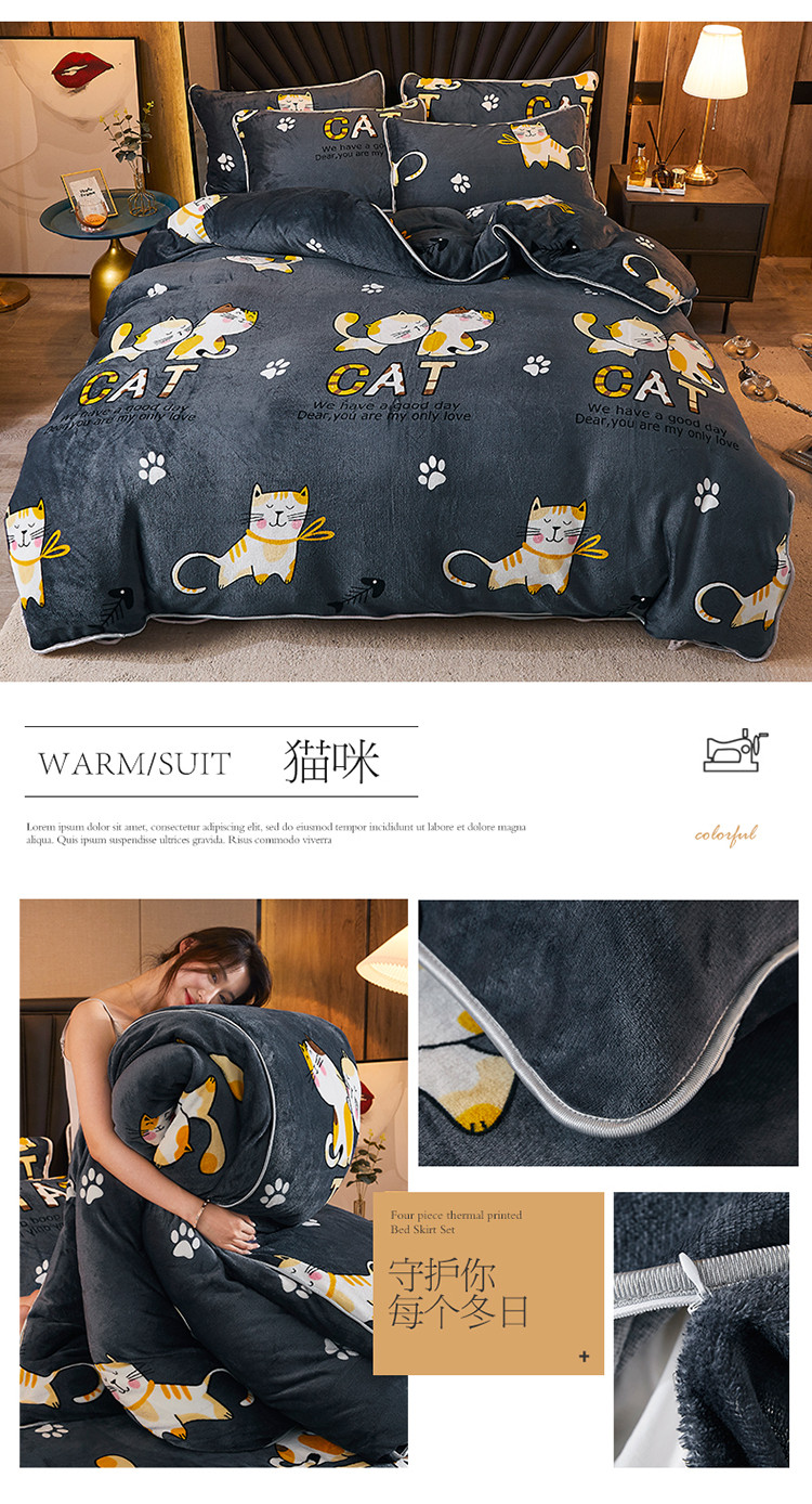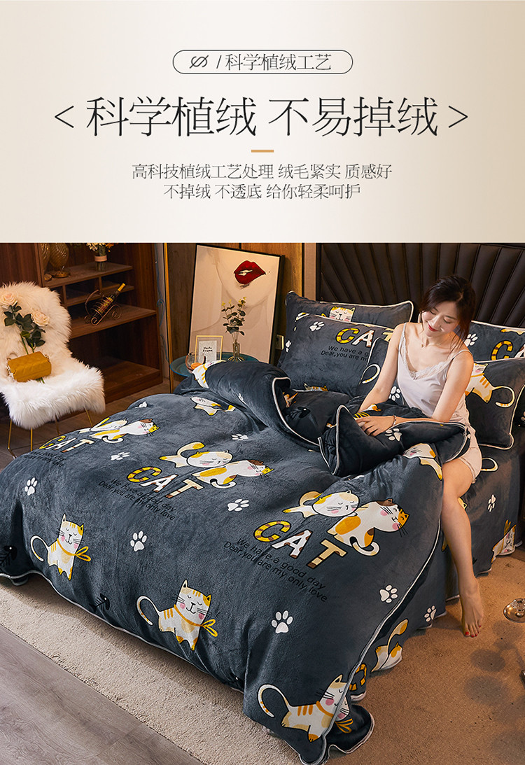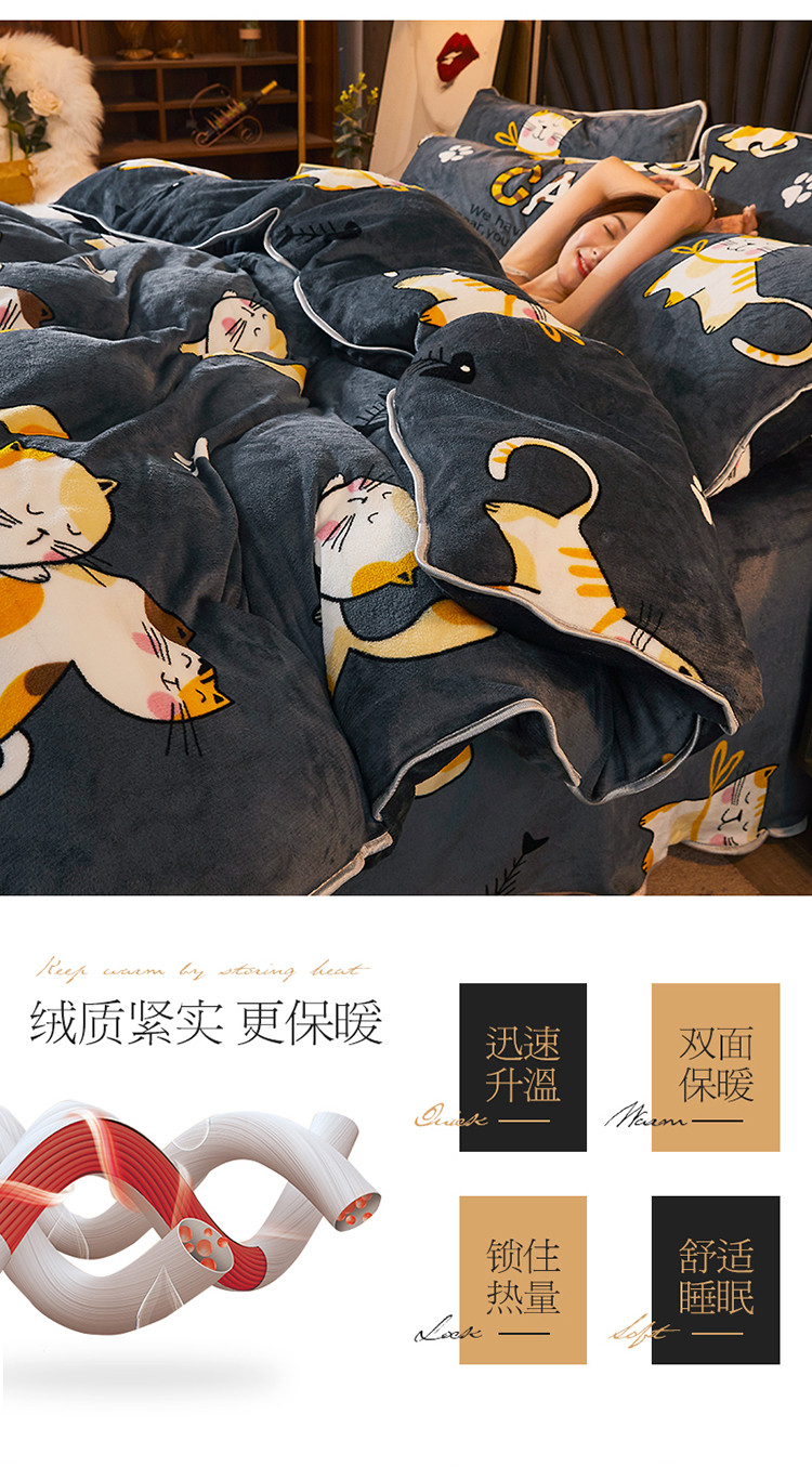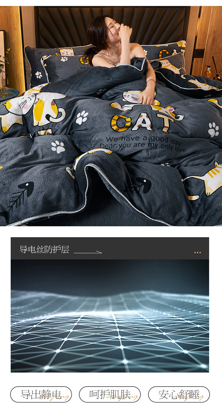 商品名称:迷仙巢 2020新款牛奶金貂绒四件套 猫咪