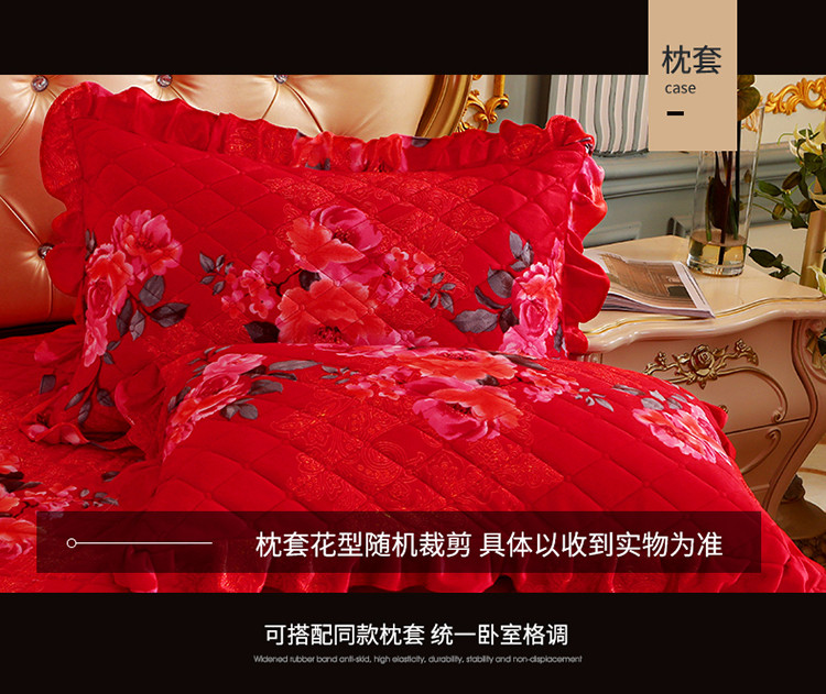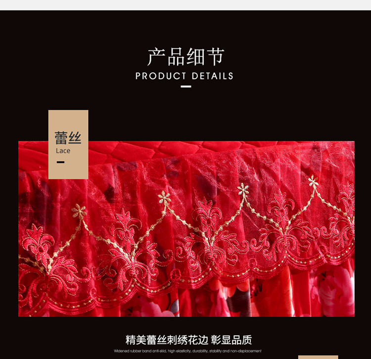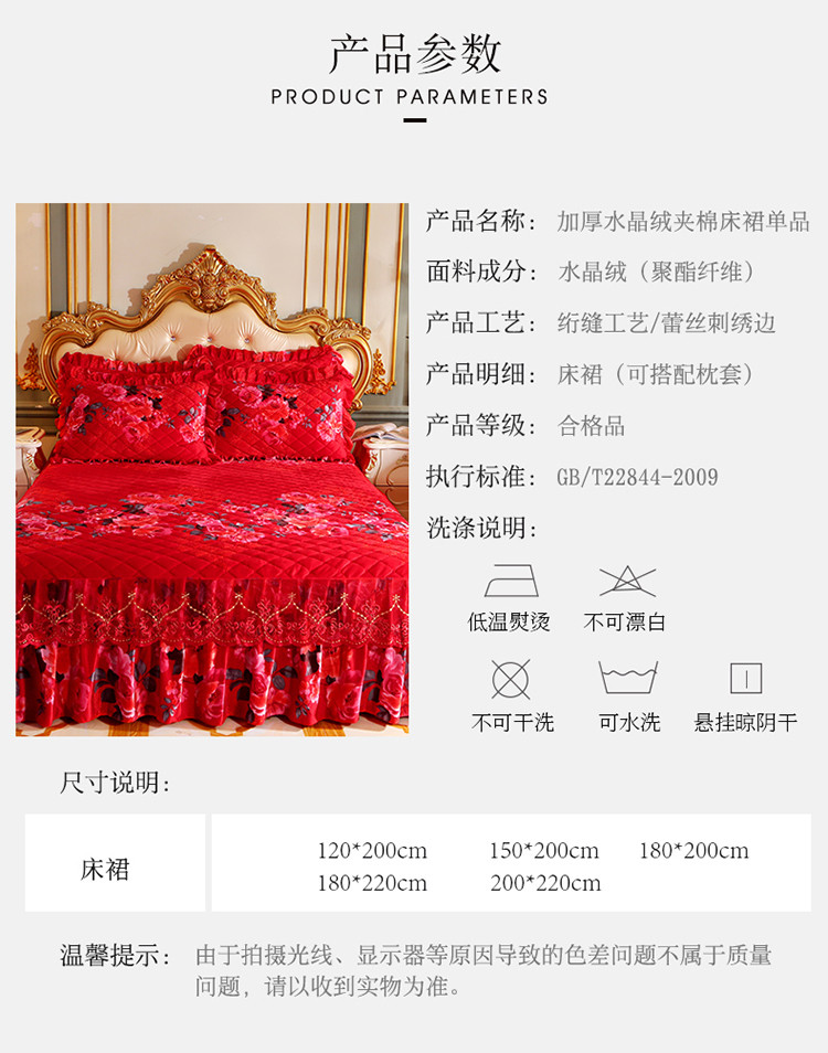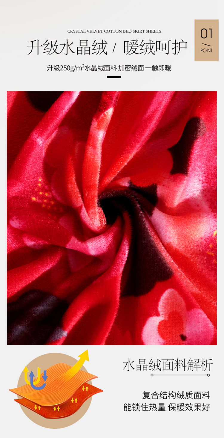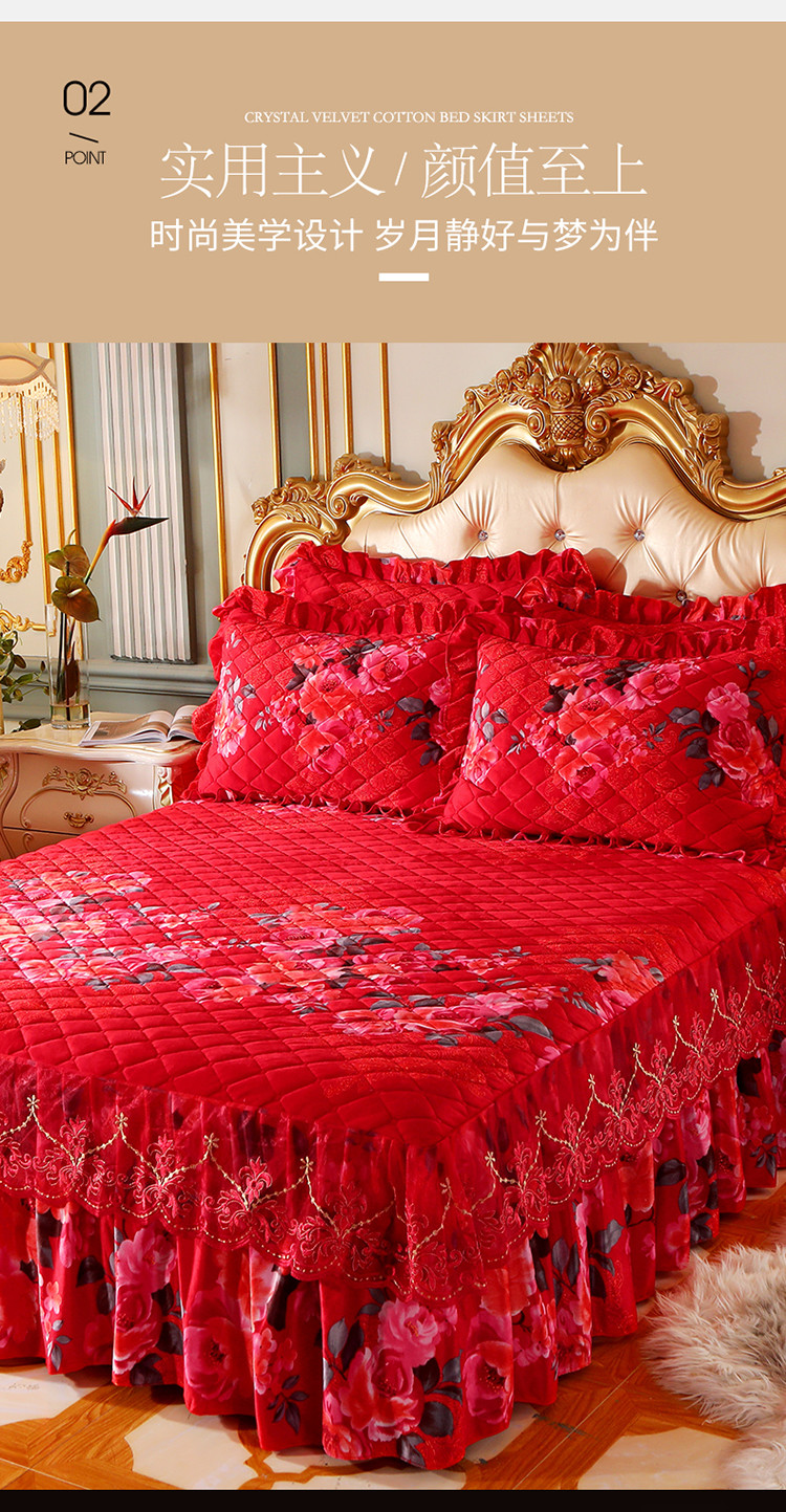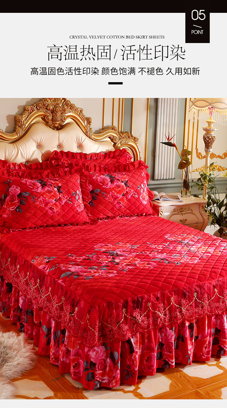 (总)宜凡家纺 2025新款婴儿绒压花全夹棉床裙四件套,韵雅-中国红,韵雅-黑天鹅