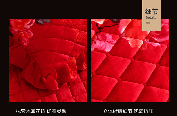 (总)宜凡家纺 2025新款婴儿绒压花全夹棉床盖四件套,韵雅-中国红,韵雅-黑天鹅