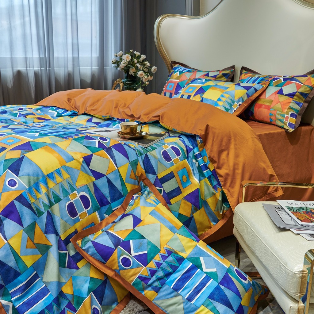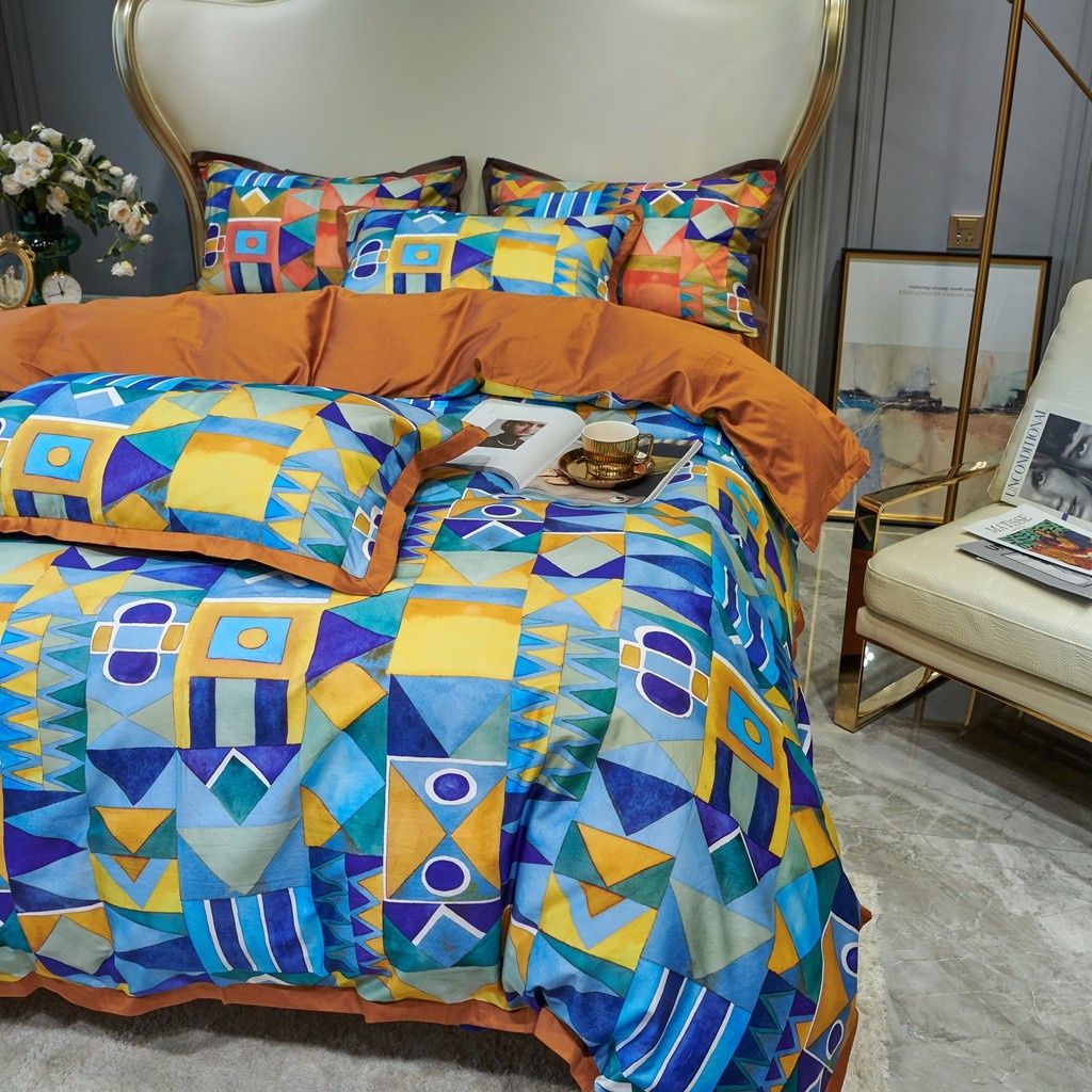 优然居 2020新款小边款数码印花四件套 科姆黄