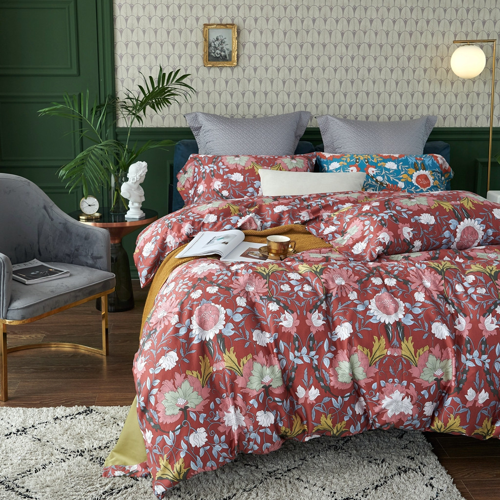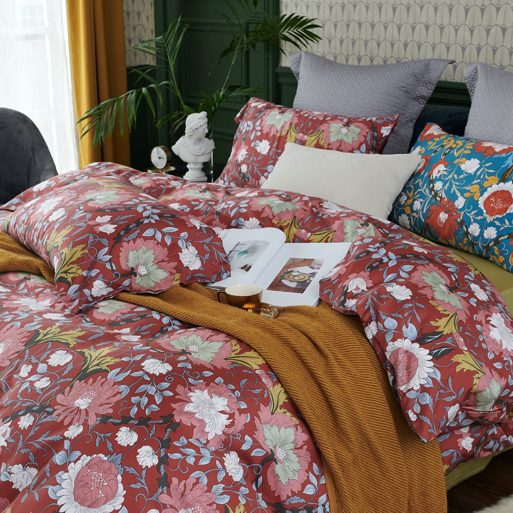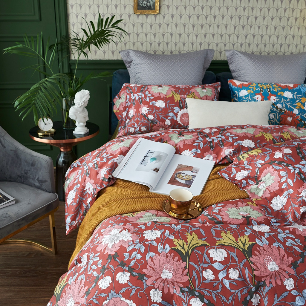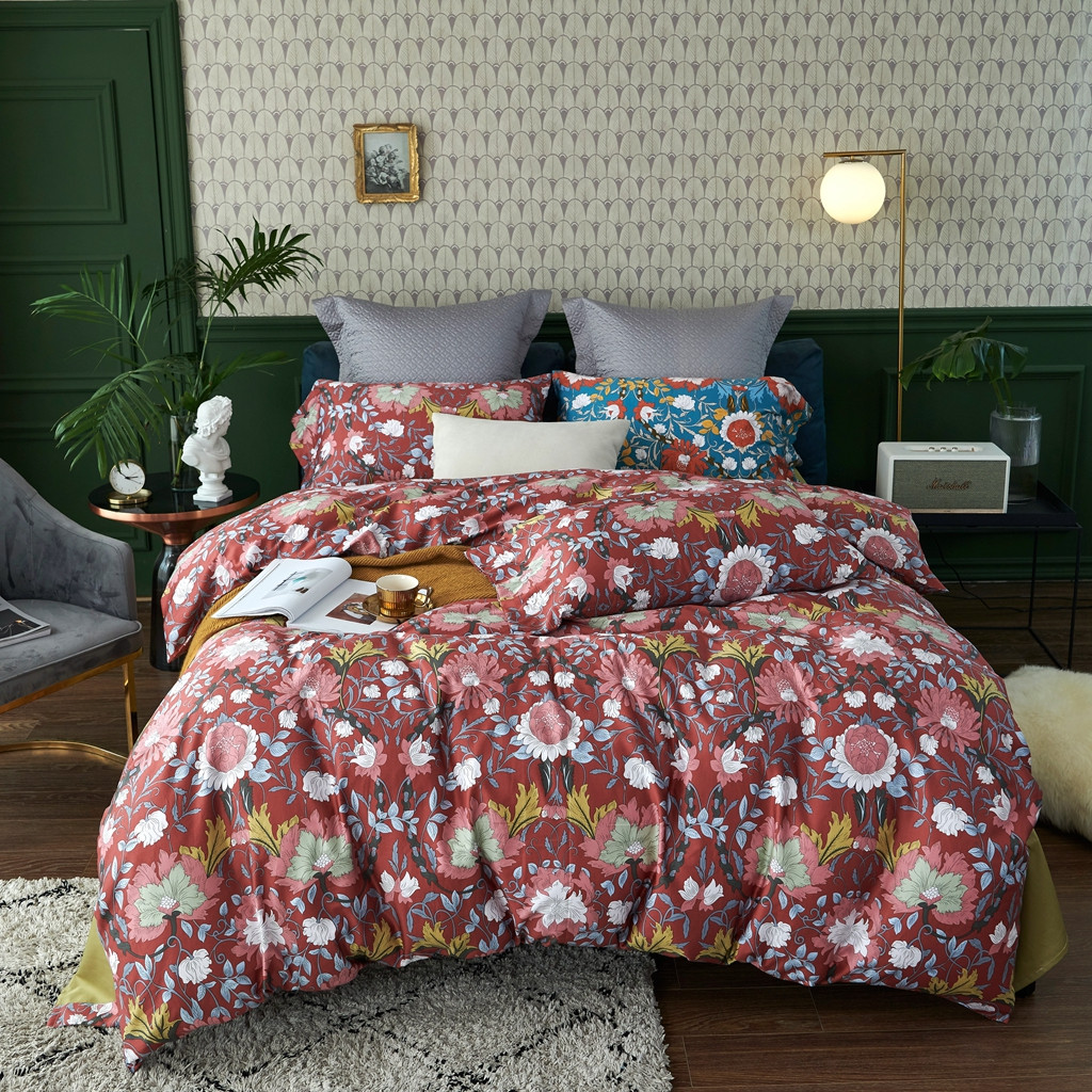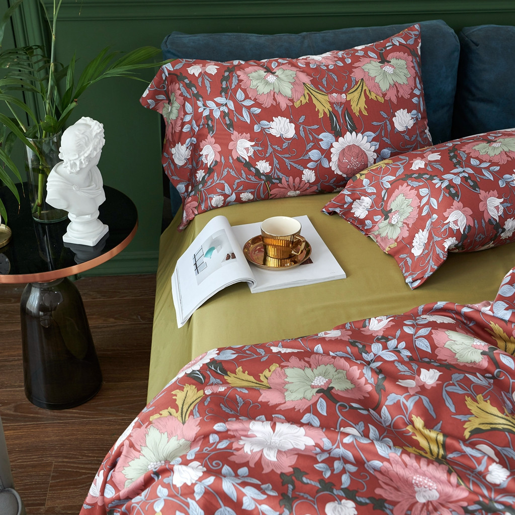 优然居2020新款60S长绒棉活性印花四件套 特赫姆红