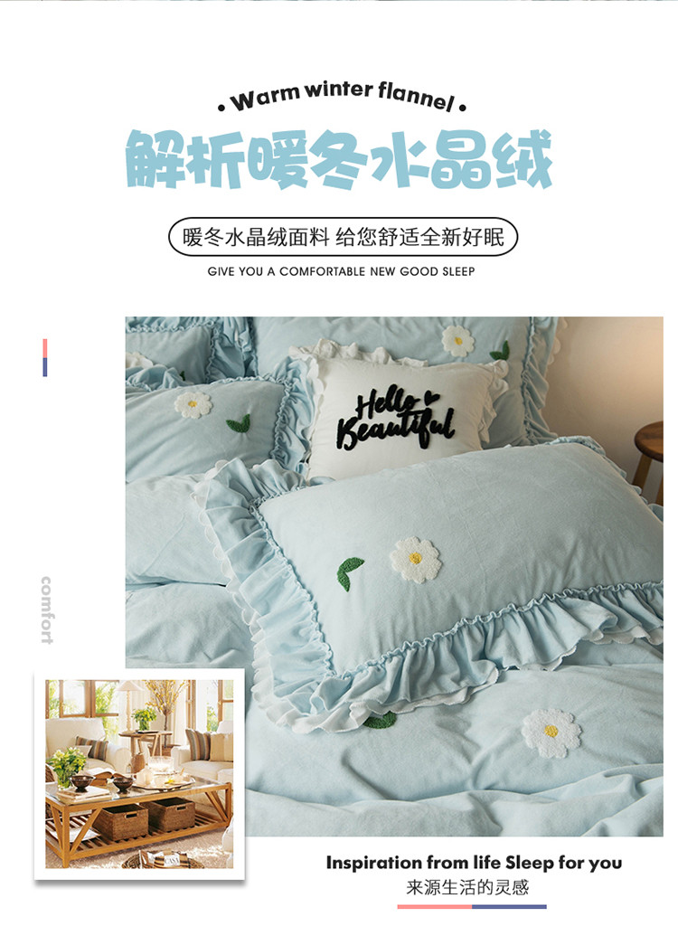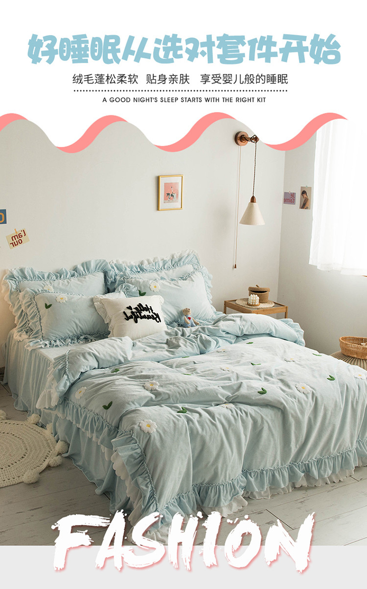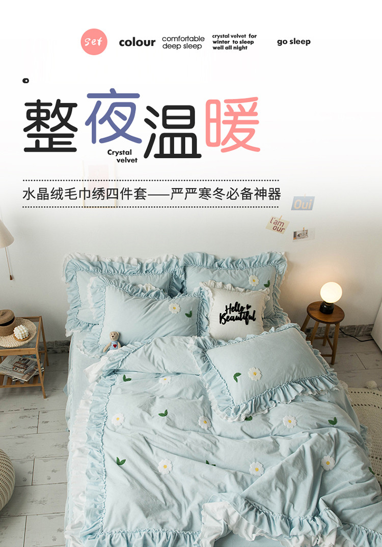 淑女公社 2020新款秋冬毛巾绣13色四件套 小雏菊淡蓝