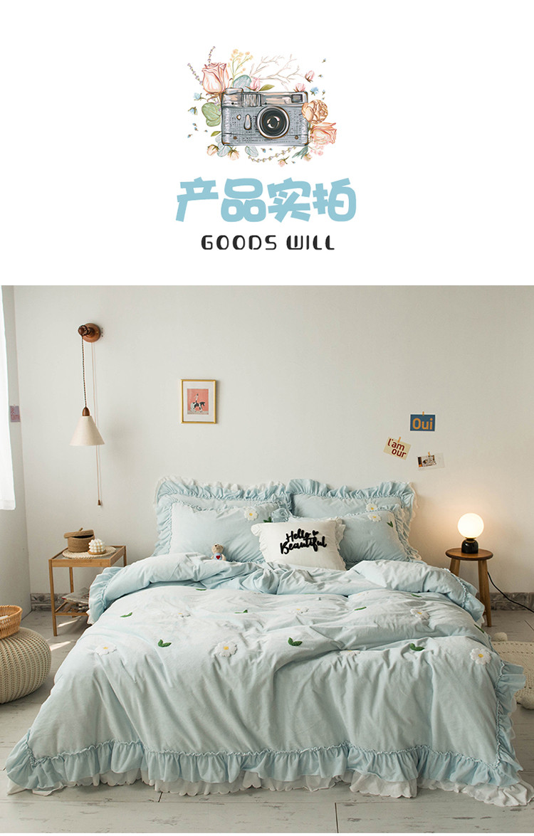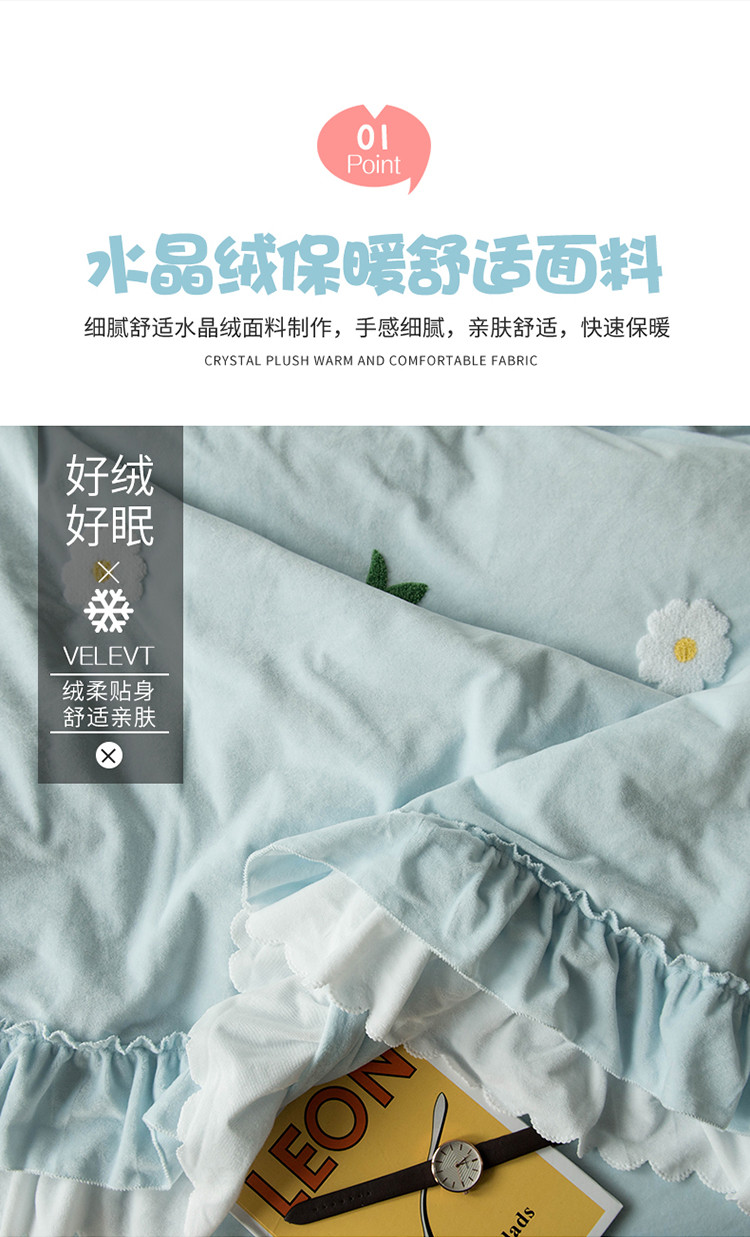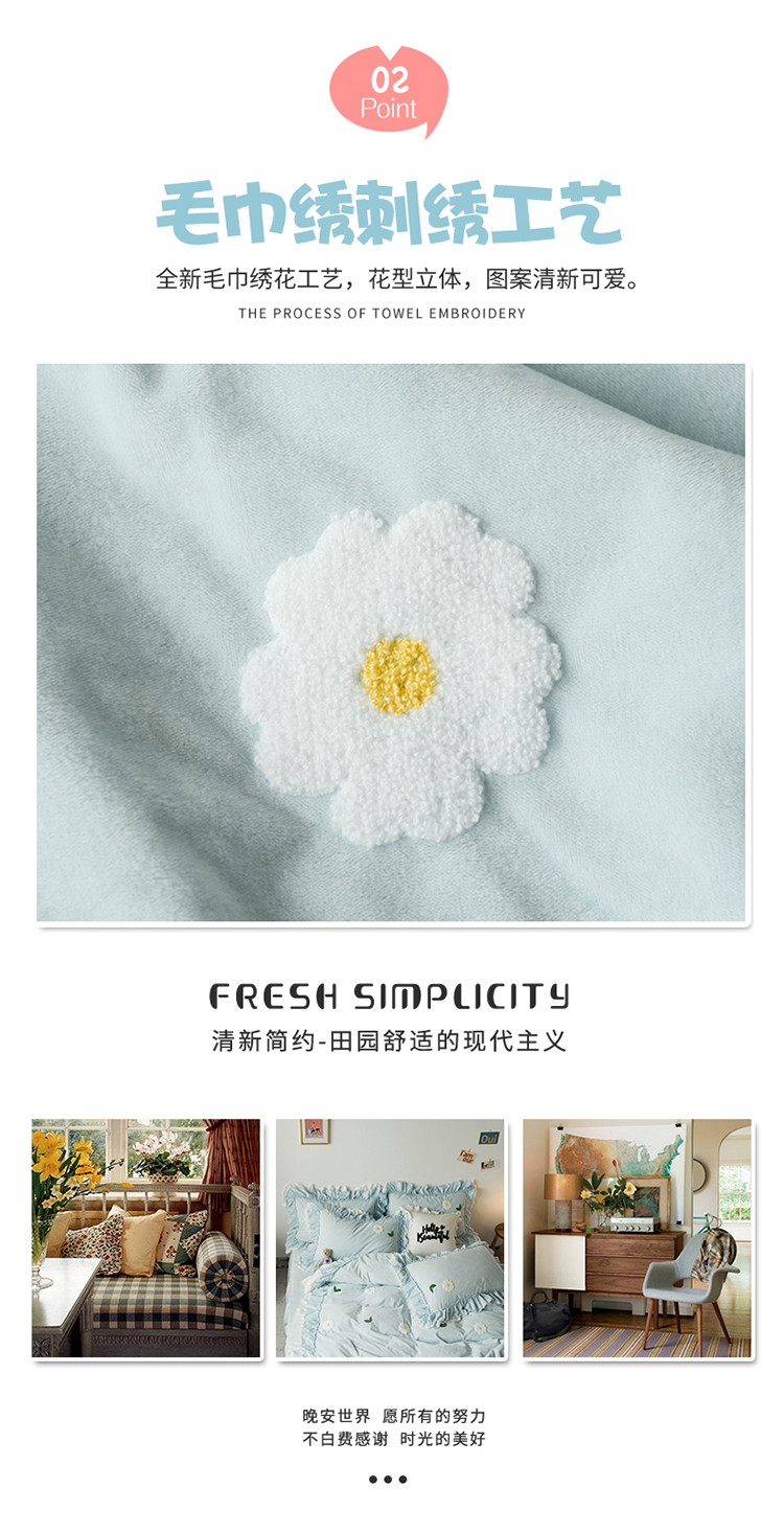 商品名称:淑女公社 2020新款秋冬毛巾绣13色四件套 小雏菊淡蓝