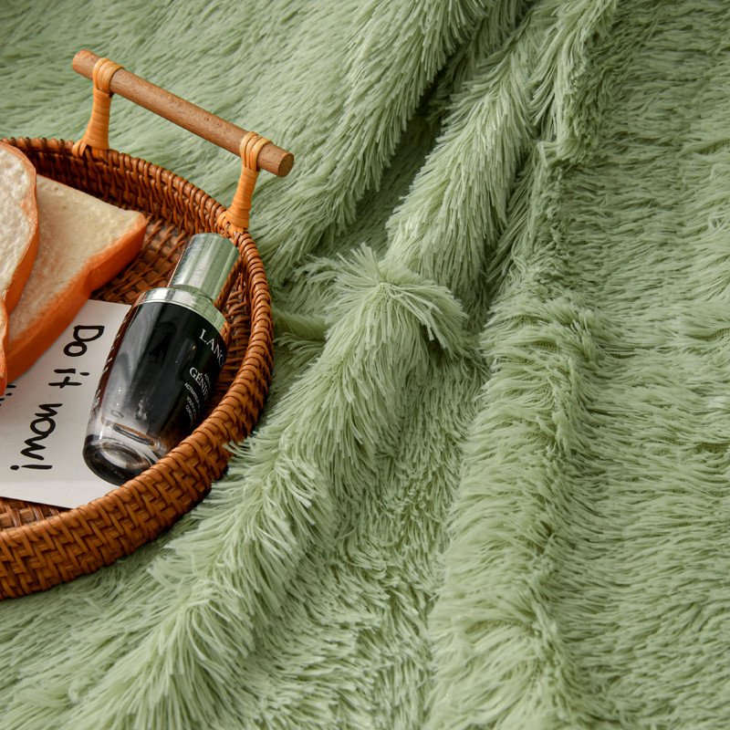 卡奥家纺 2021多功能双层超柔长毛毯空调毯毛绒被套 果绿色