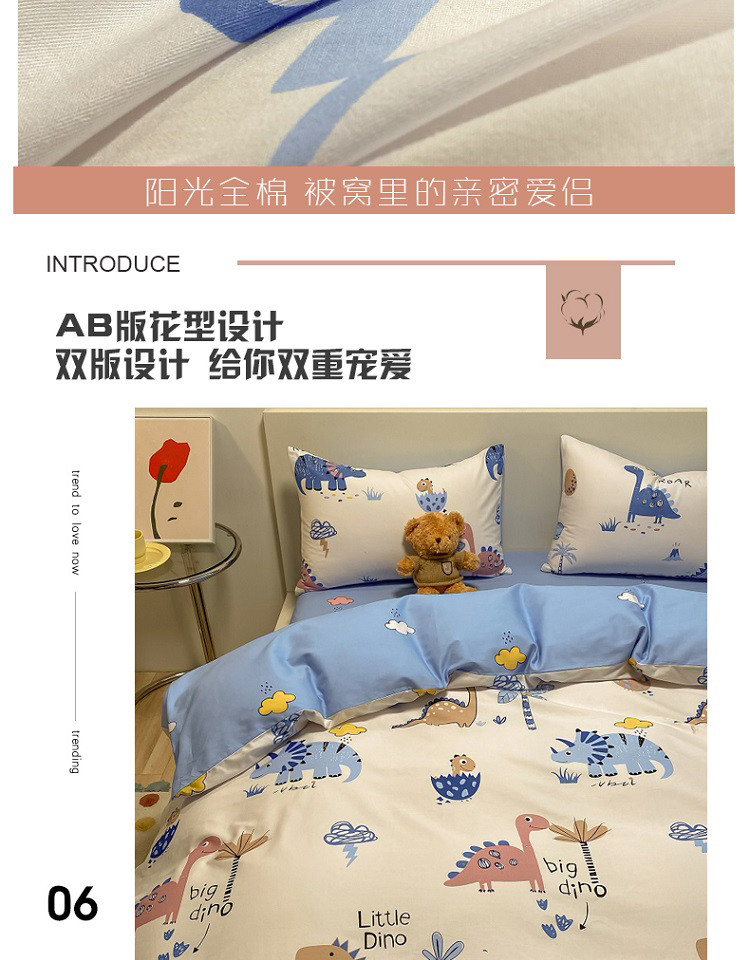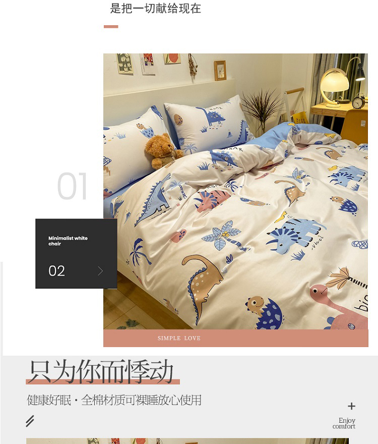 吉象 2021全棉四件套纯棉四件套直播13070 趣味恐龙
