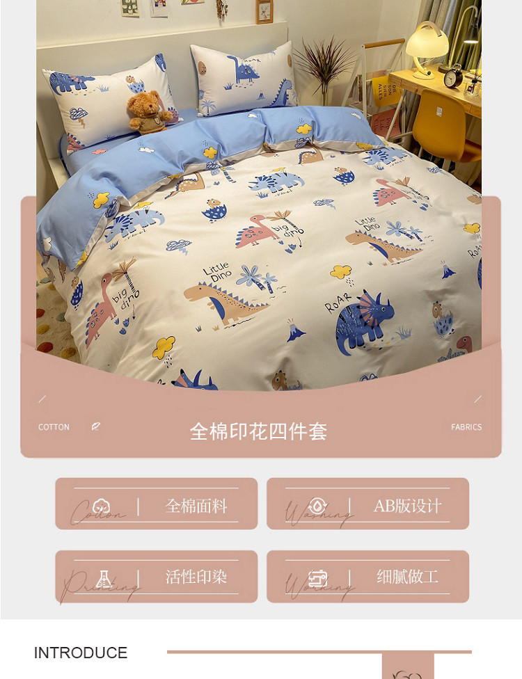 商品名称:吉象 2021全棉四件套纯棉四件套直播13070 趣味恐龙