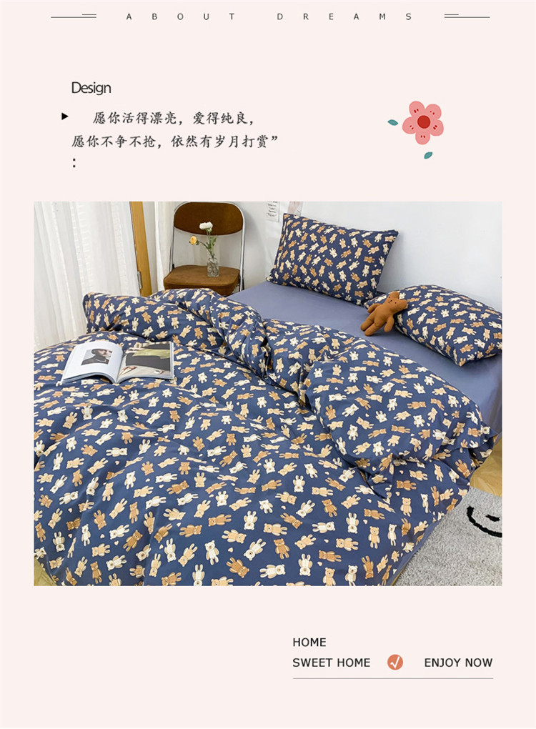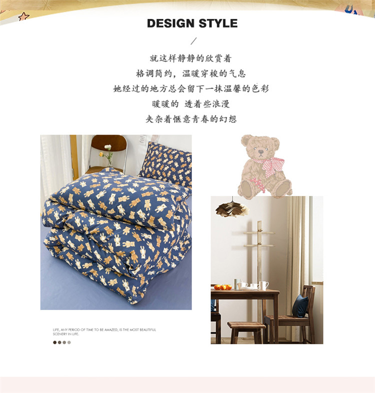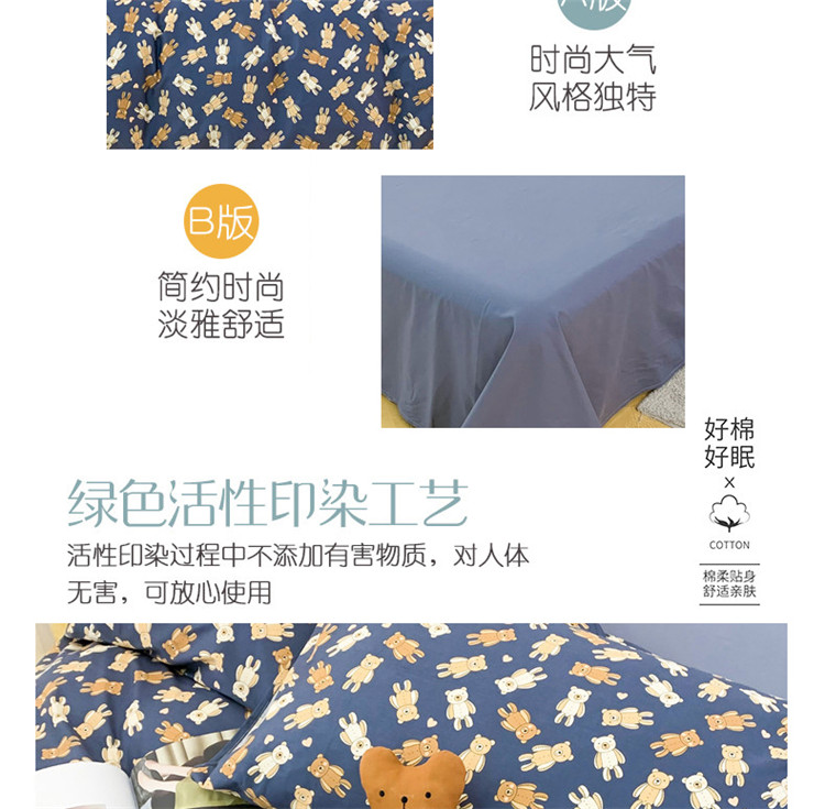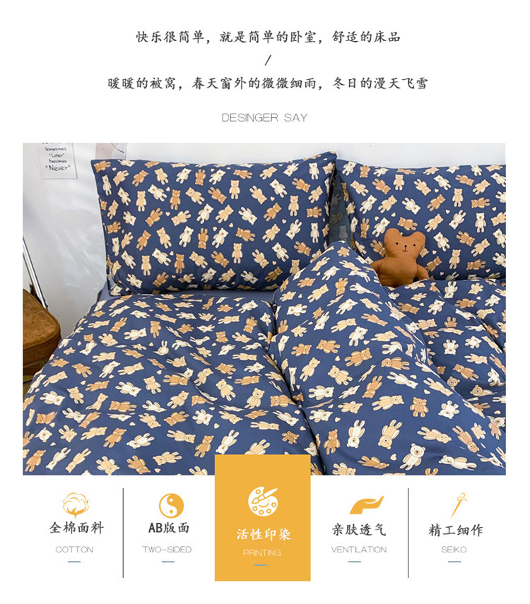 (总)感遇家纺 2021新款春夏新品全棉四件套纯棉三件套,AB熊,小情调-灰,小情调-桔,小情调-蓝,英伦熊-灰,律动,迷你熊