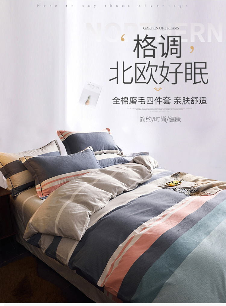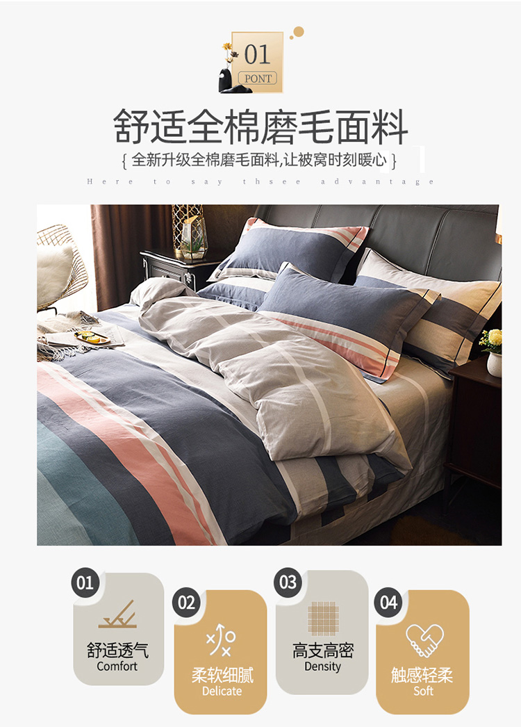 商品名称:威布斯 2021新款全棉加厚磨毛四件套 极简主义-灰