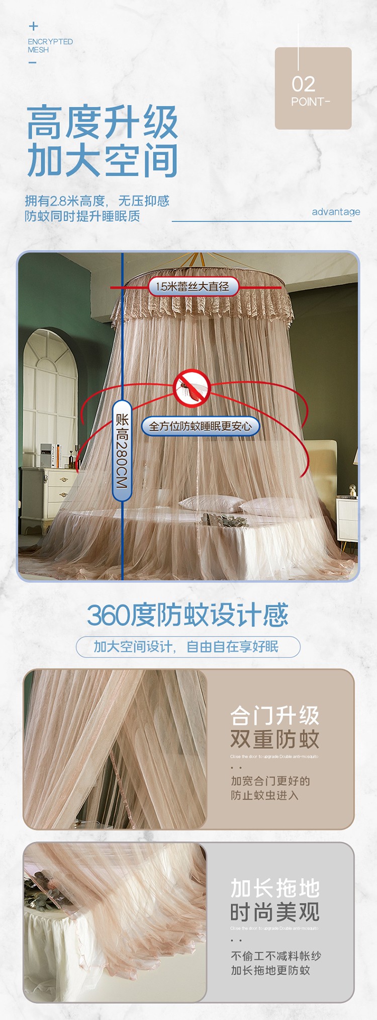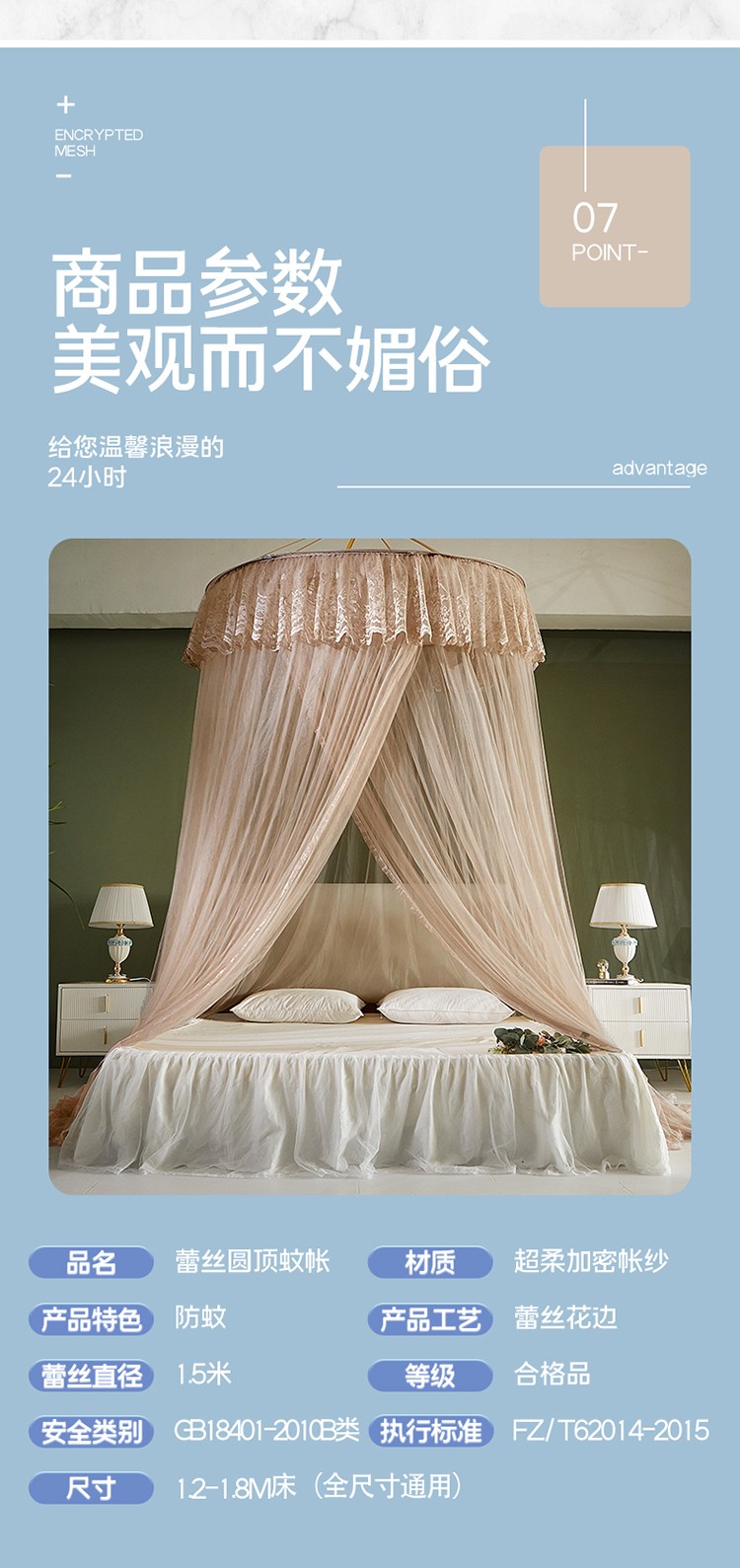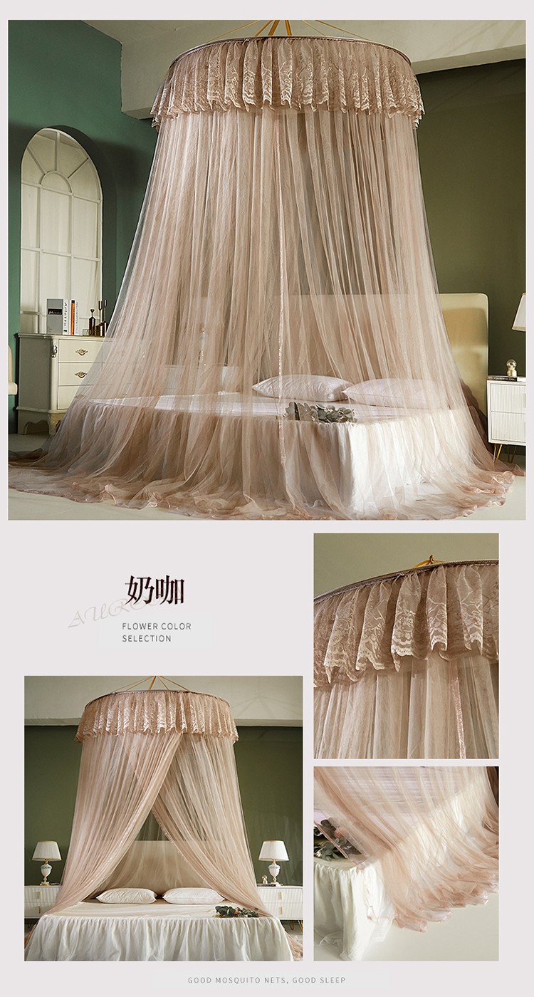 商品名称:夏彩 88518蕾丝大圆吊顶蚊帐 奶咖