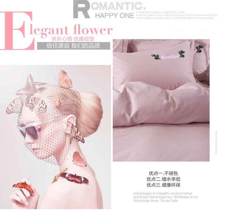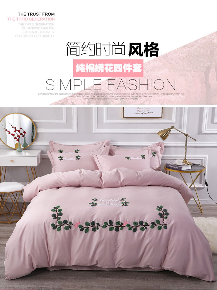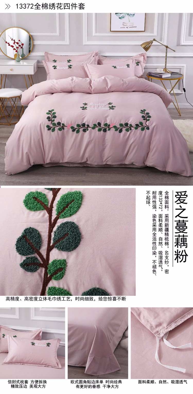 商品名称:2021新款全棉13372毛巾绣纯棉刺绣花四件套 爱之蔓藕粉