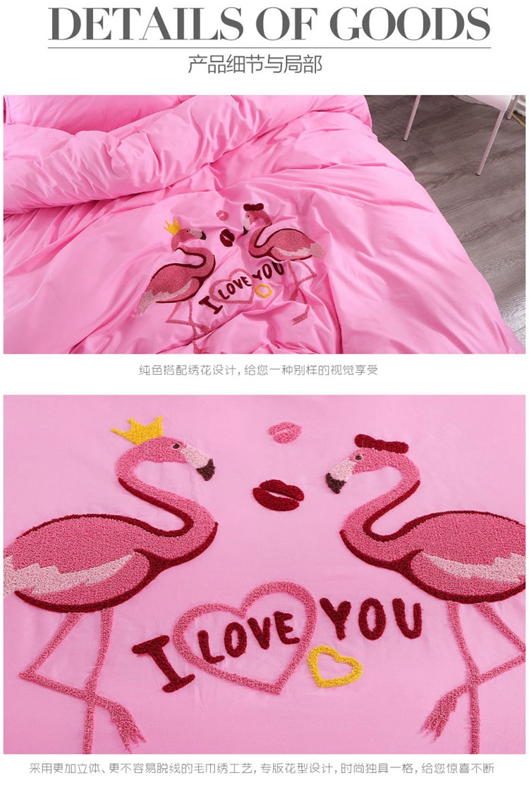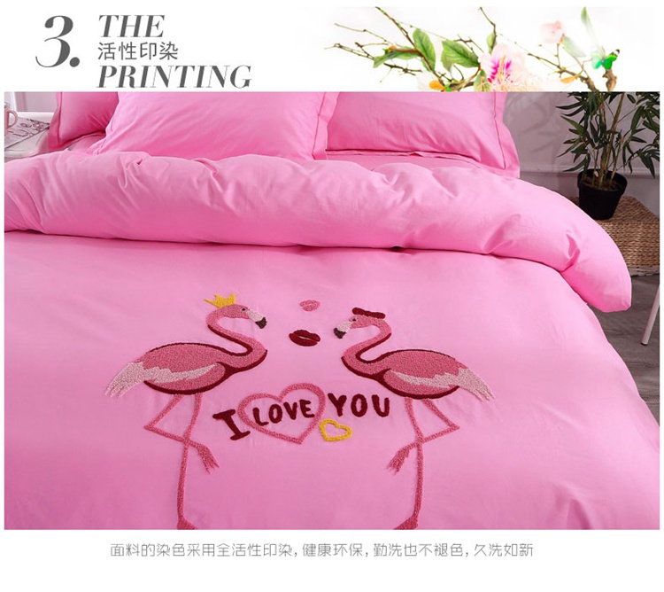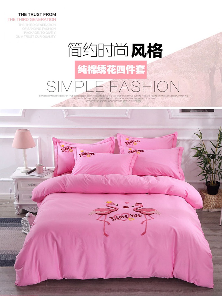 商品名称:2021新款全棉13372毛巾绣纯棉刺绣花四件套幸福烈鸟粉色