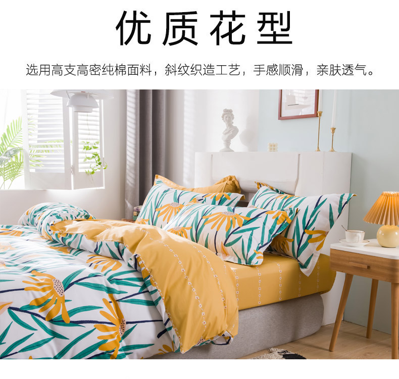 (总)星期三 2021新款时尚羽毛系列全棉13372四件套(加老板微信有会员价),缤纷羽毛-粉,缤纷羽毛-绿,羽叶,羽毛信封-黄