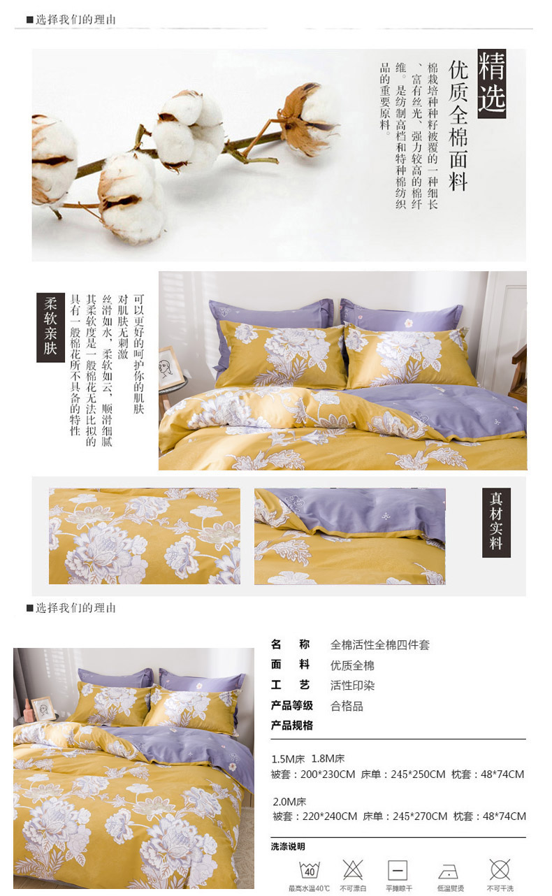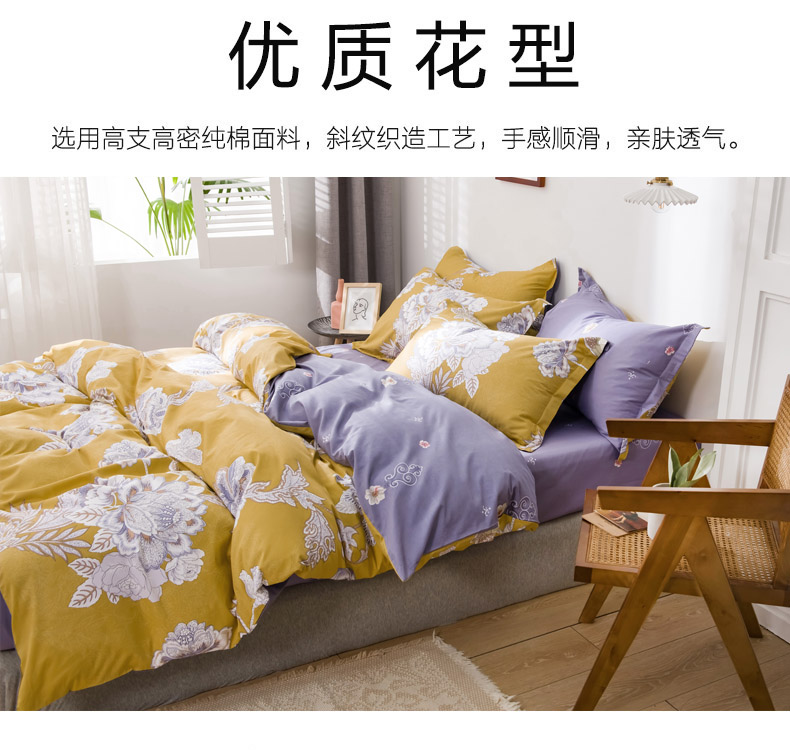 商品名称:星期三 2021新款花卉系列全棉13372四件套(加老板微信有会员价) 月流光-黄