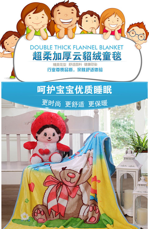 (总)爱她美家纺 新款童毯毛毯100*140cm双层,棒球叮当猫,大黄鸭,格子熊,火烈鸟,领结猫,小白兔,小鹿,小恐龙,可爱小兔,小浣熊