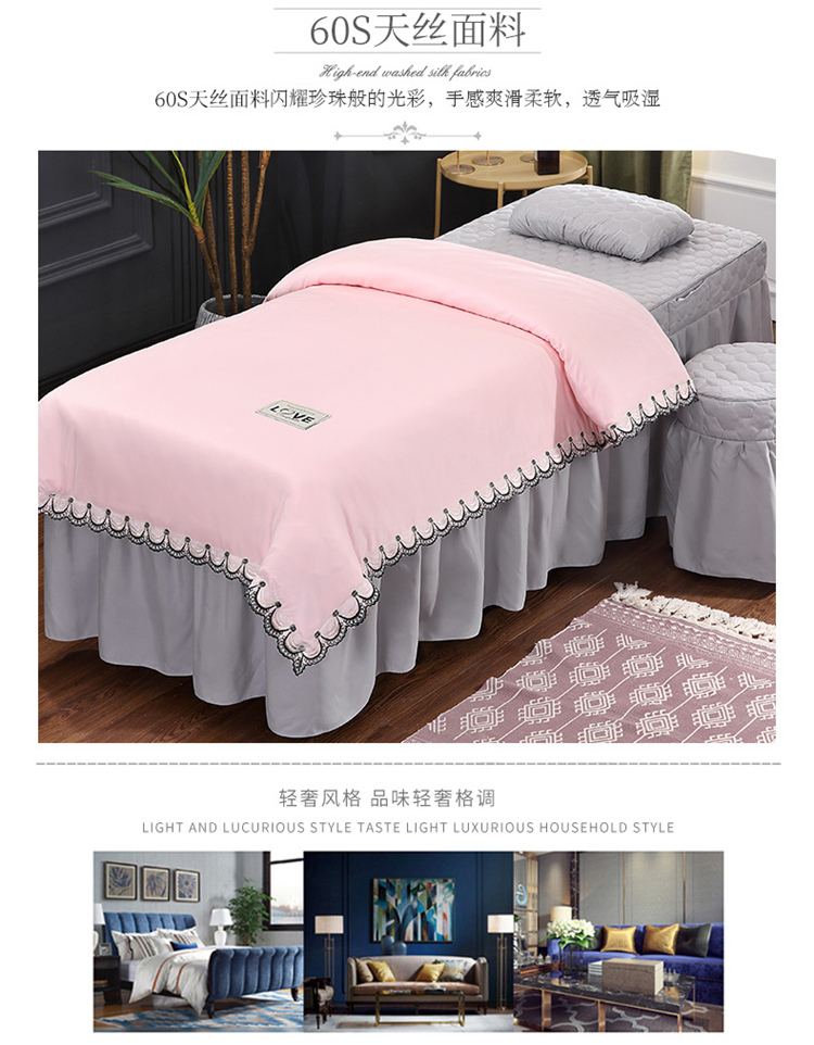 (总)乐逸家纺 2026新款源头工厂美容床罩套件可定制可以刺绣logo四季款亲肤,小清新绿色+灰,小清新豆沙,小清新粉拼浅玉,小清新蝴蝶结拼白,小清新栀子海拼驼,小清新紫拼蓝