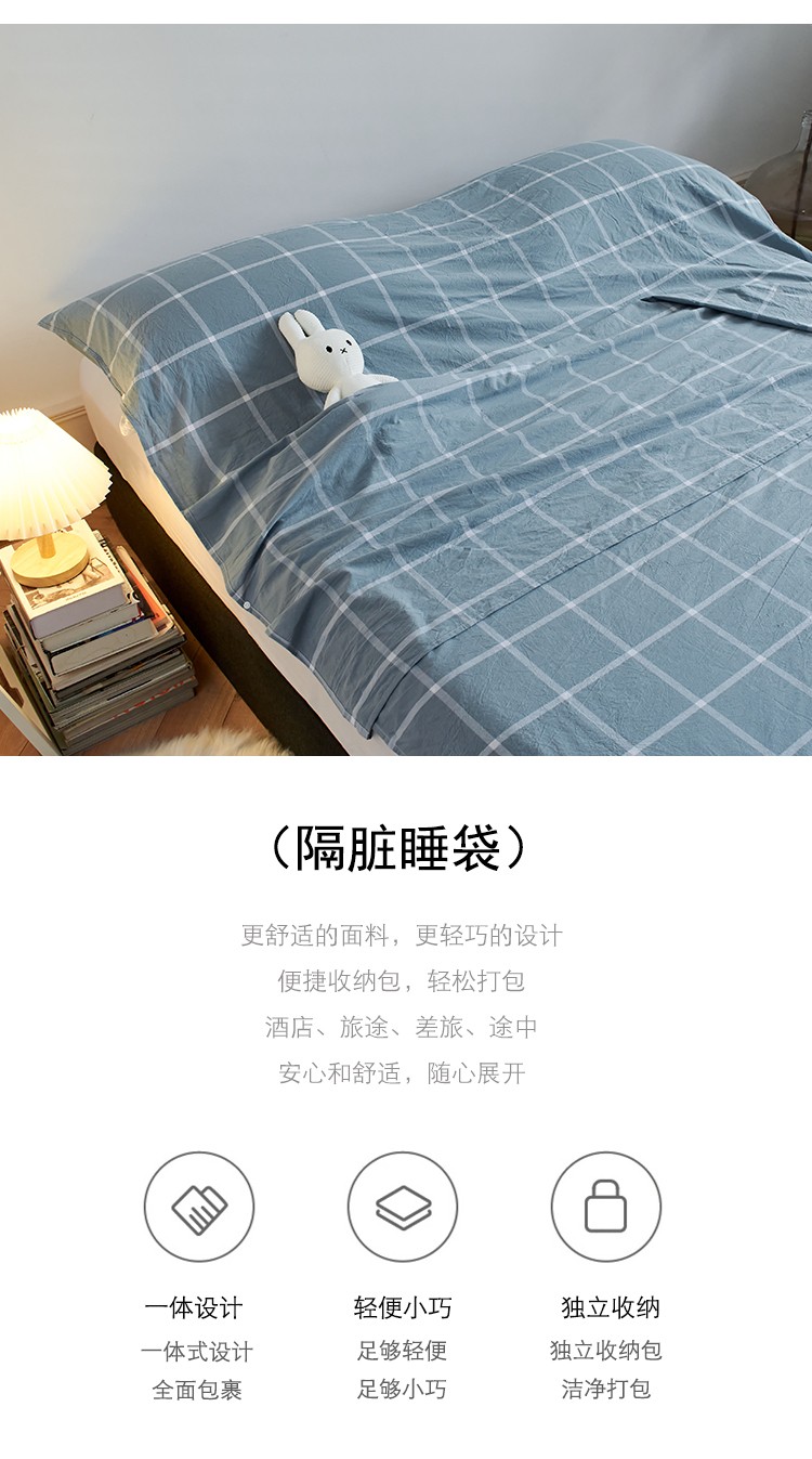 无印色织全棉水洗棉酒店隔脏睡袋便携式出差旅游行单双人床单被套