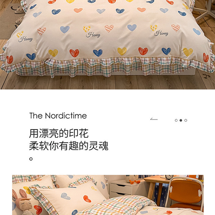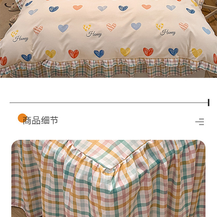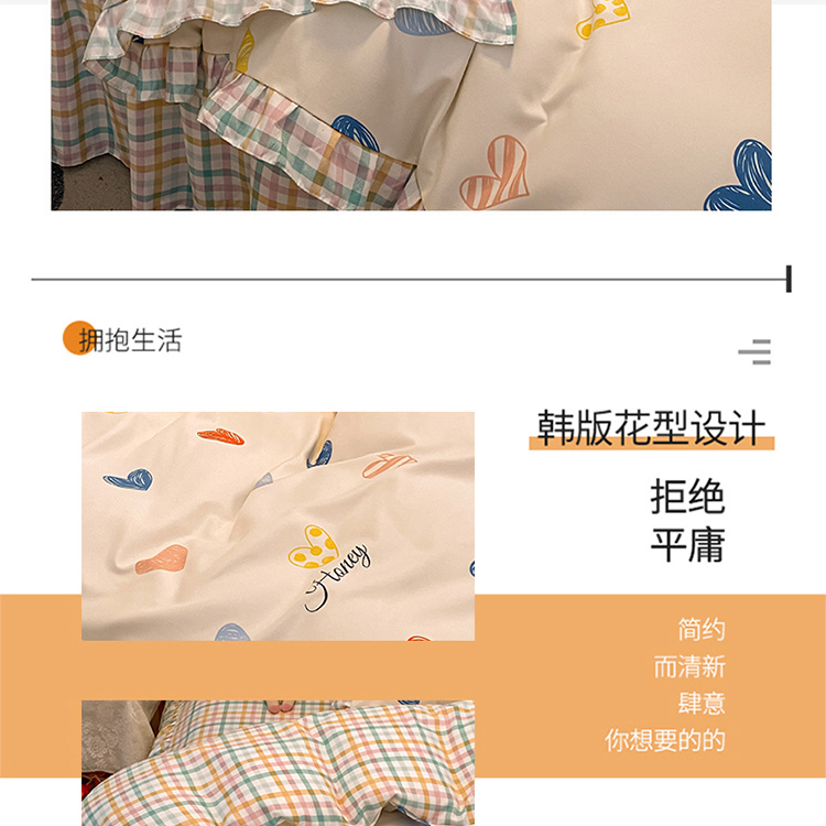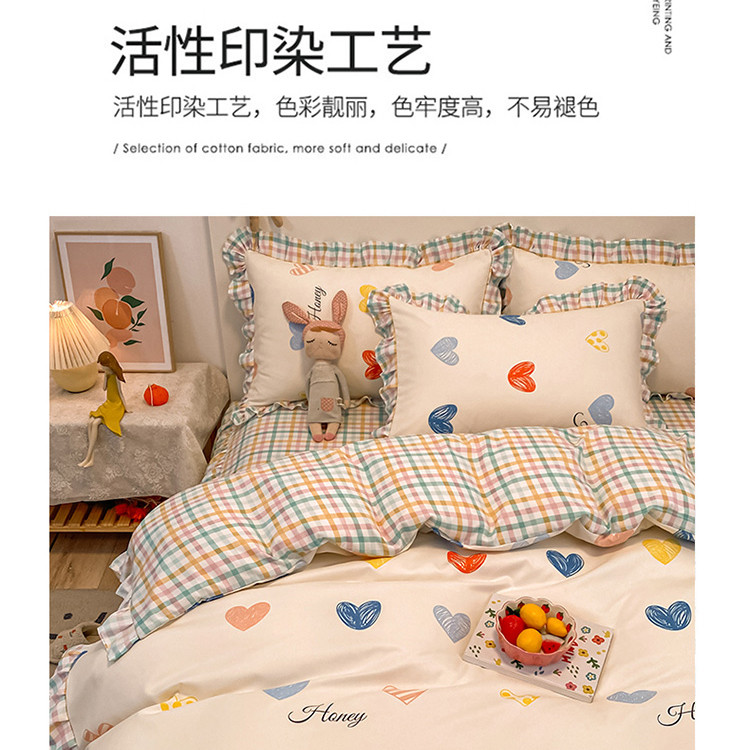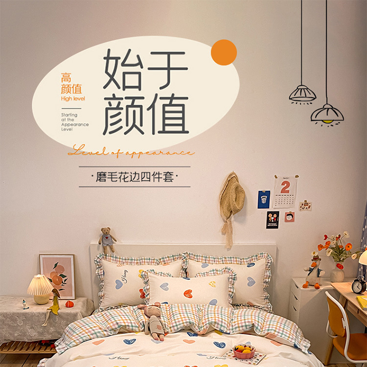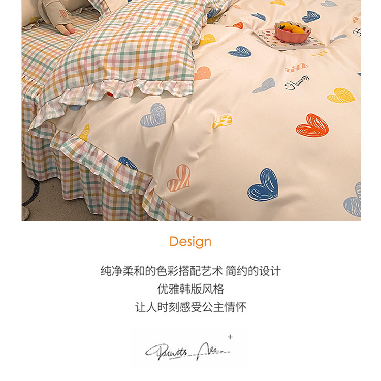 当前位置: 91家纺网 > 商品网购 > 床品套件 > 四件套 > 上尚居 2024新款小清新韩版花边磨毛四件套水洗棉心愿-兰