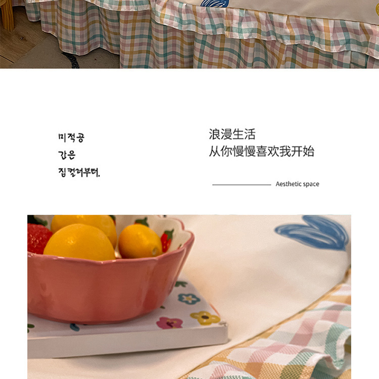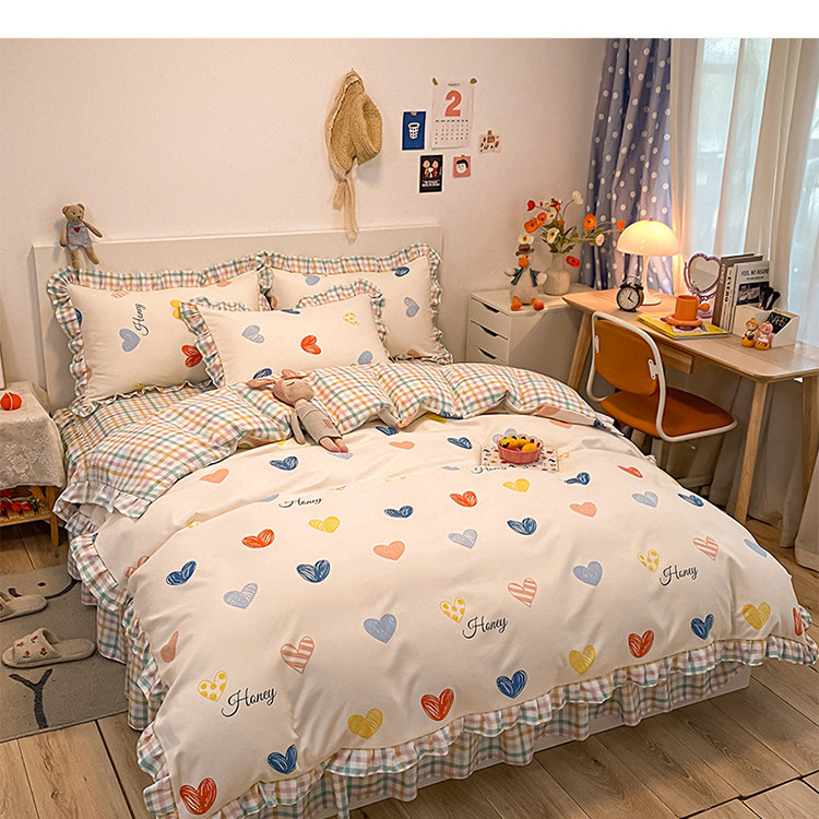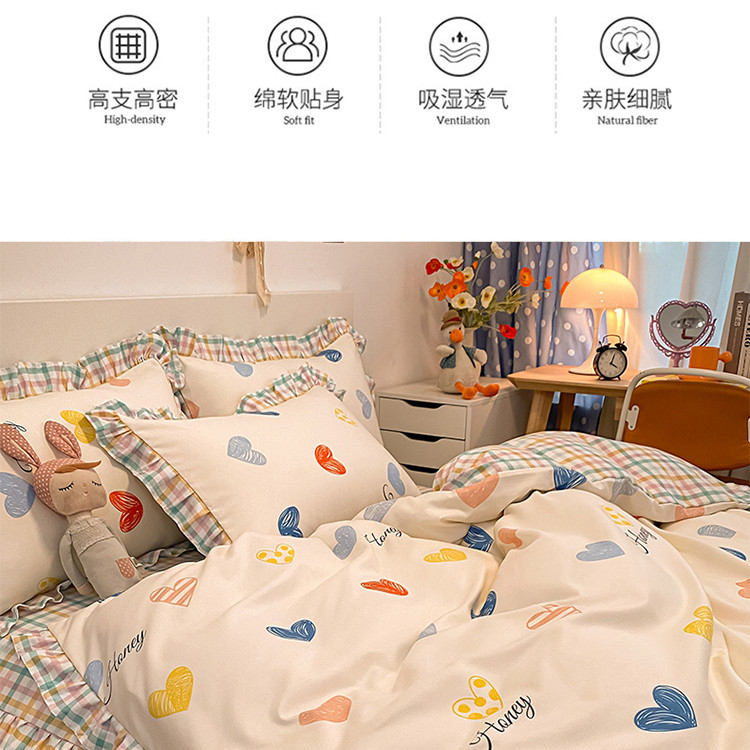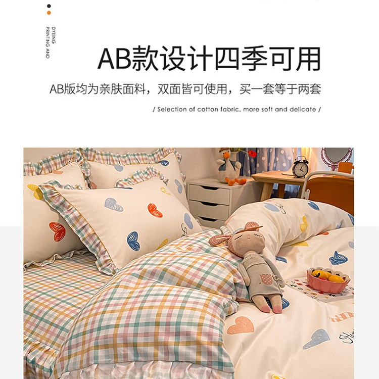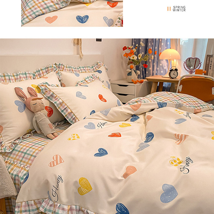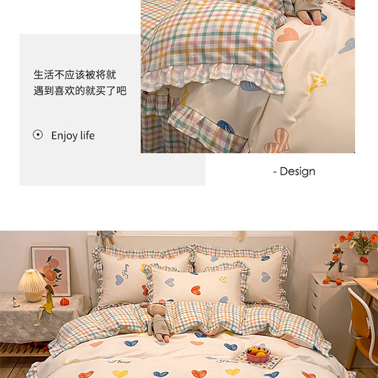 当前位置: 91家纺网 > 商品网购 > 床品套件 > 四件套 > 上尚居 2024新款小清新韩版花边磨毛四件套水洗棉心愿-兰