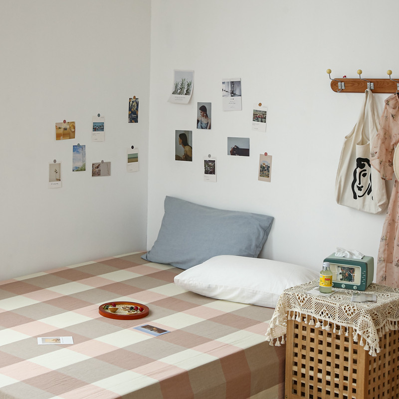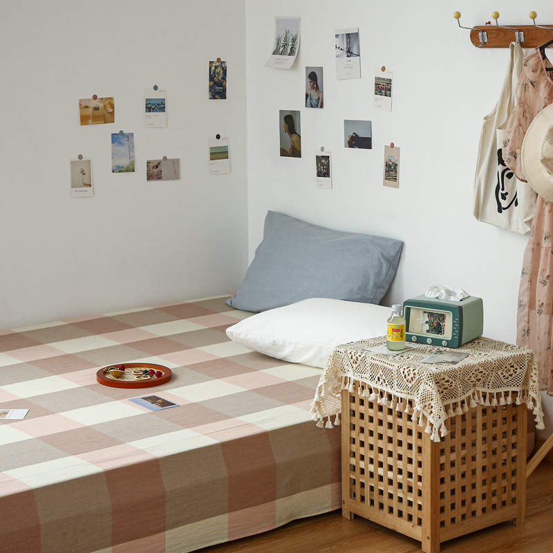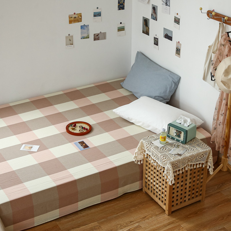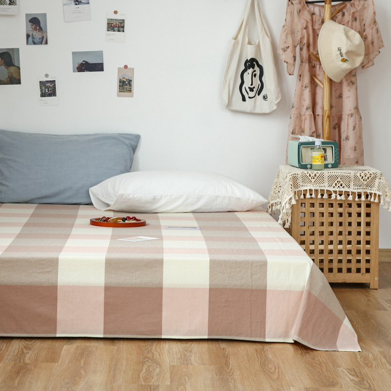 安莱生活 2021新款色织全棉水洗棉单床单 粉大格