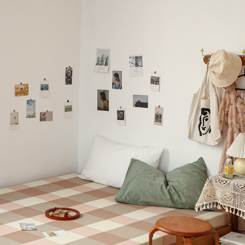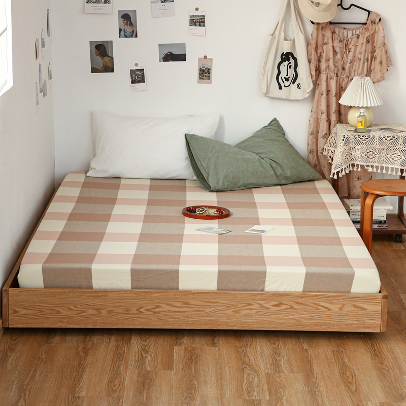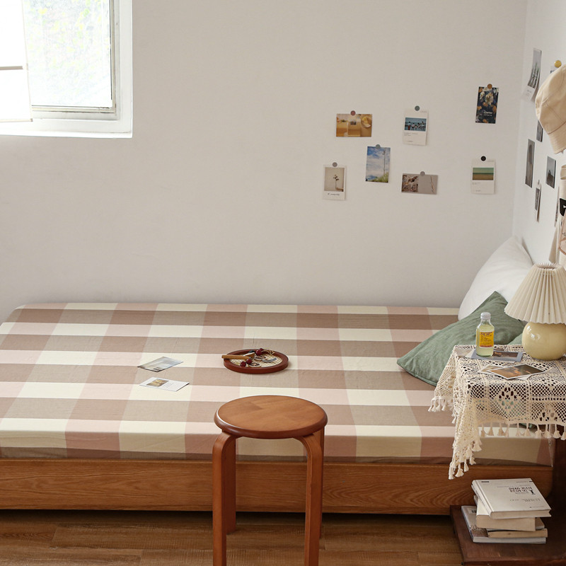 安莱生活 2021新款色织全棉水洗棉单床笠 粉大格