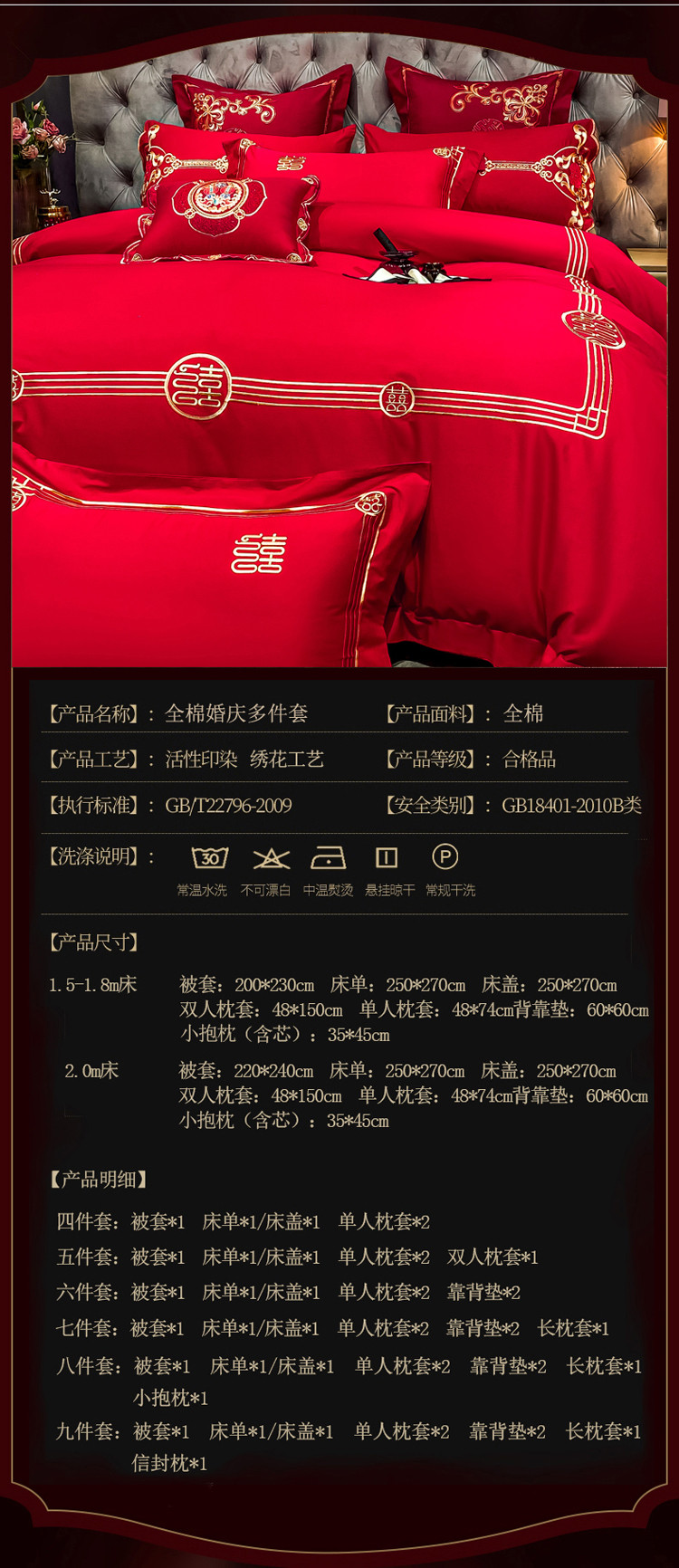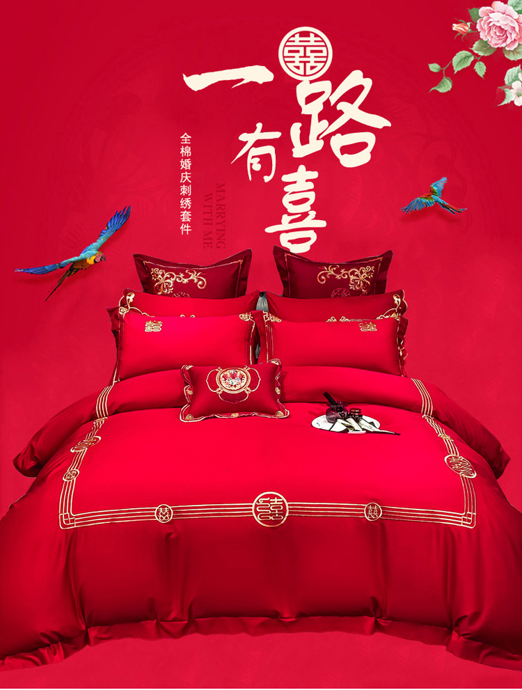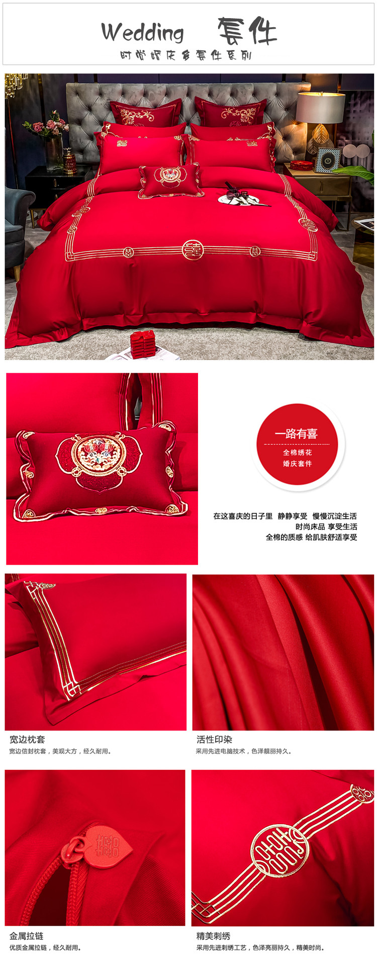 当前位置: 91家纺网 > 商品网购 > 床品套件 > 四件套 > 全棉活性四件套 > 甜咪咪 2021新款大红婚庆全棉系列四件套 一路有喜