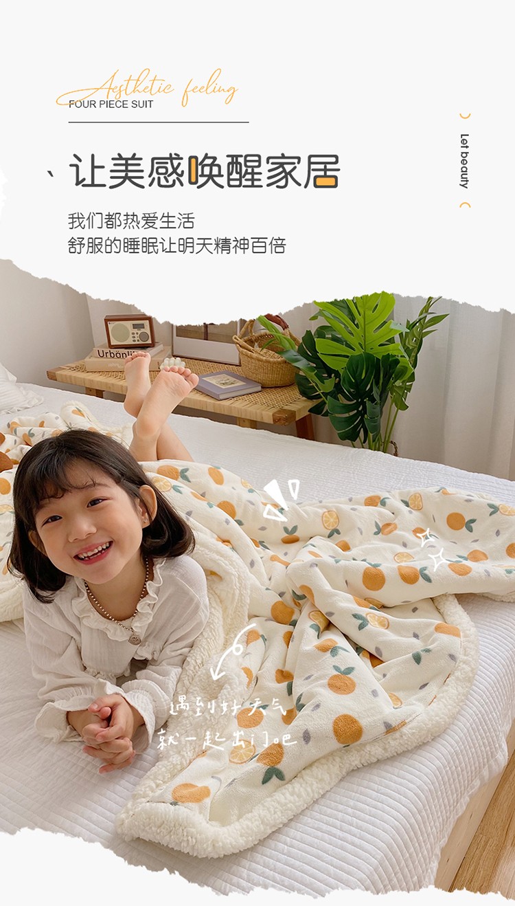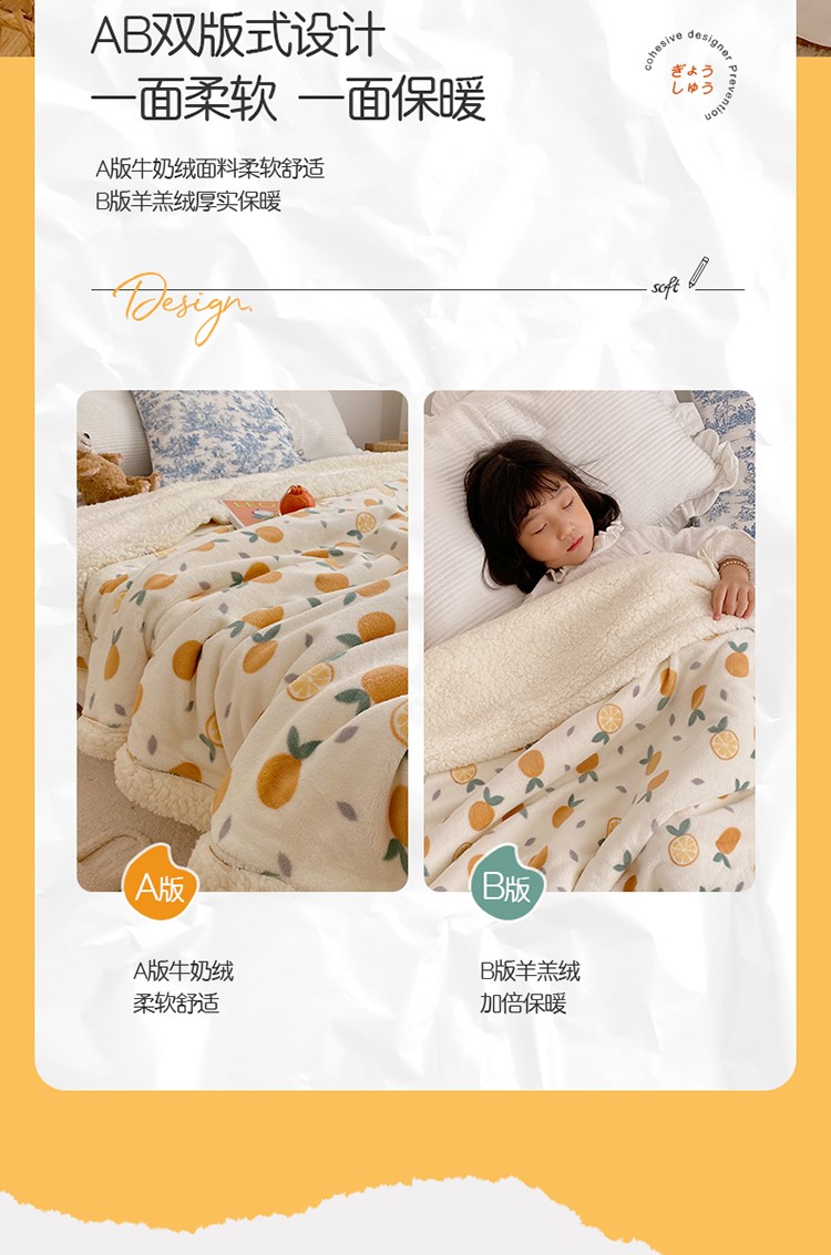 萝莉家纺 2021保暖加厚牛奶绒毛毯羊羔绒毯子被套毯小橘子