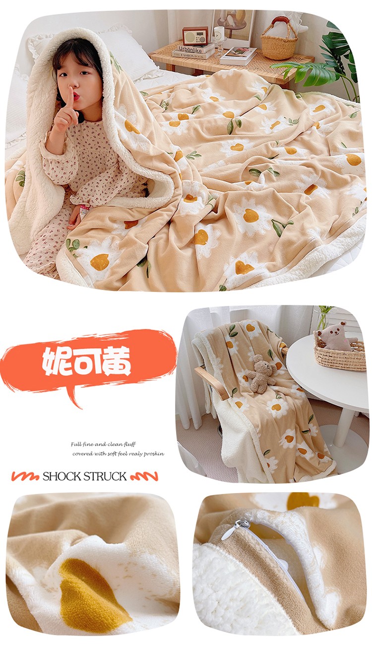 (总)萝莉 2021新款立体羊毛绒双层毯,草霉,黑色雏菊,咖色雏菊,樱桃