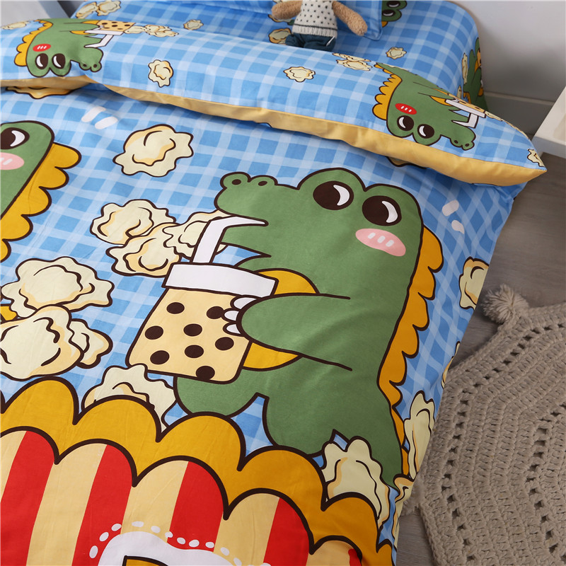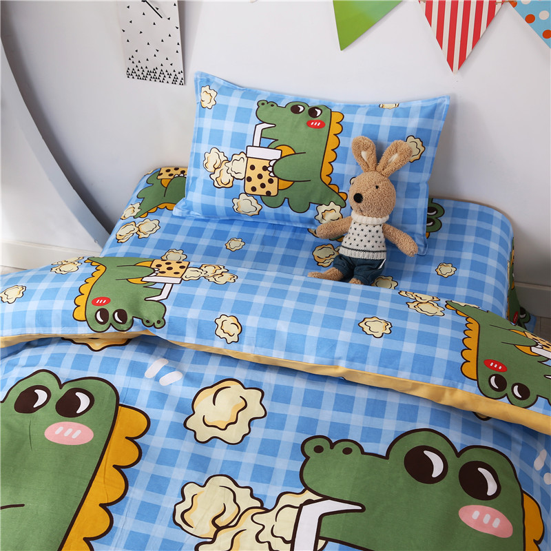 当前位置: 91家纺网 > 商品网购 > 床品套件 > 多件套 > 多件套 > 孩子王家纺 全棉13372小版卡通幼儿园多件套 贪吃鳄鱼