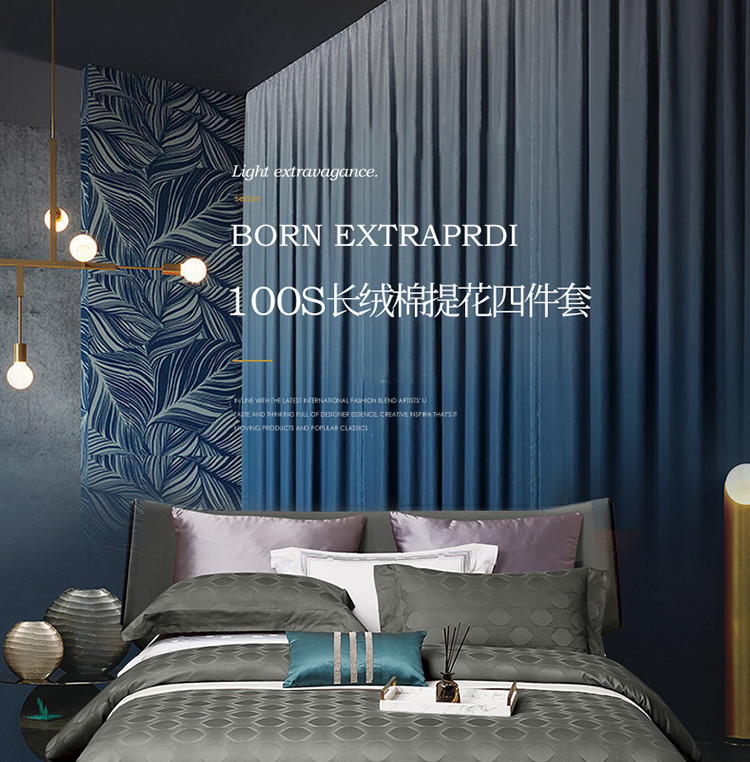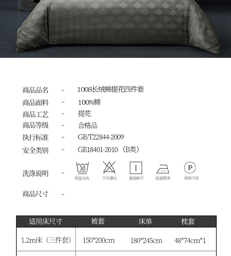 商品名称:名品优仓 2023新款高支高密长绒棉提花四件套 灰