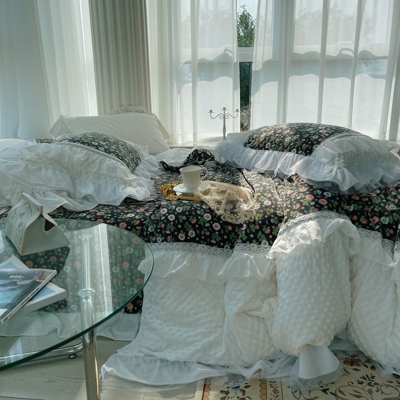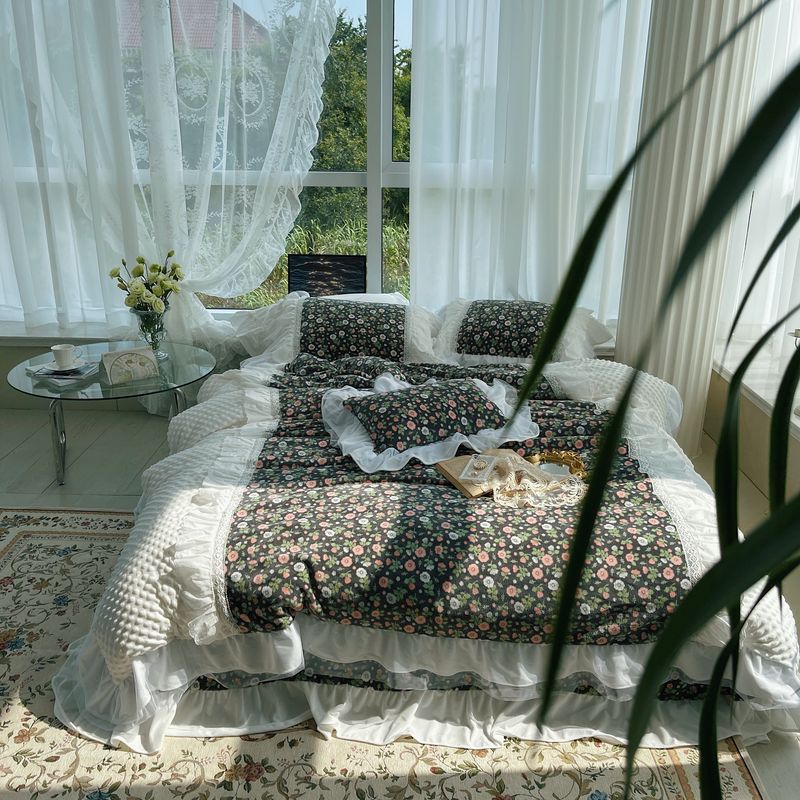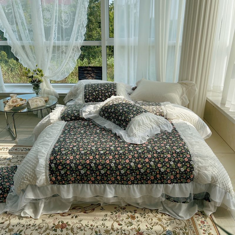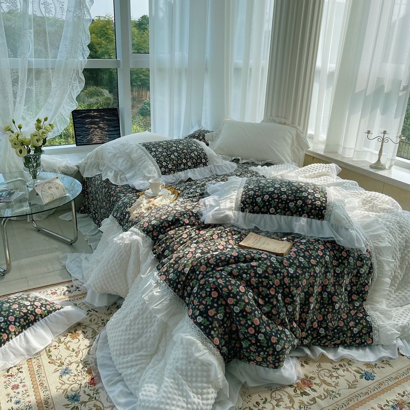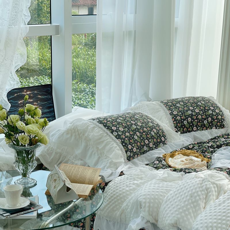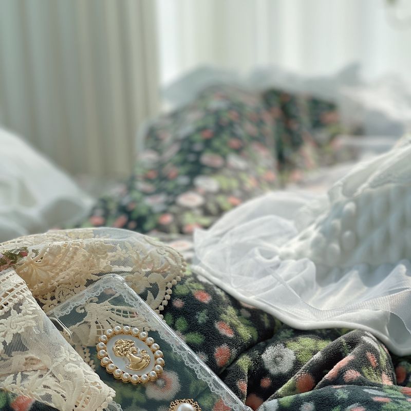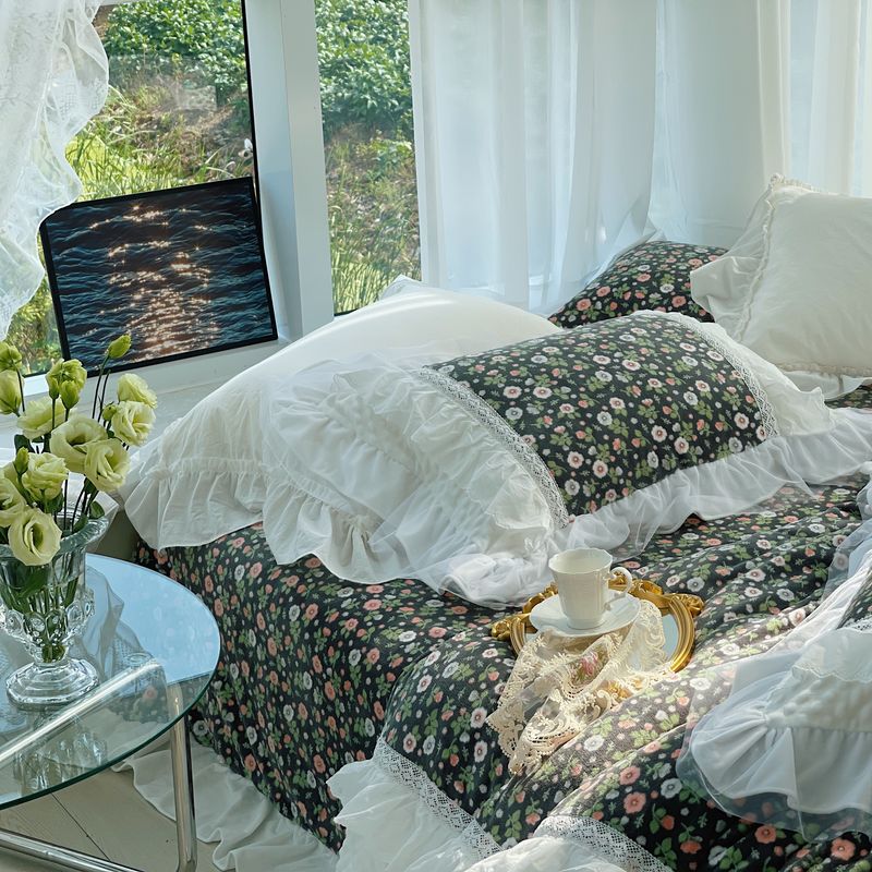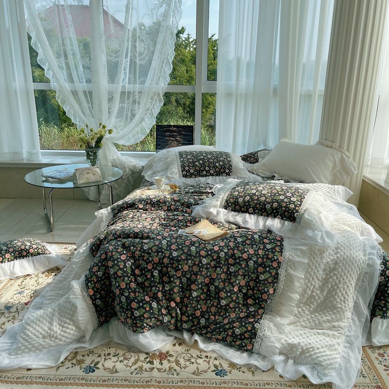 (总)嗨购 2022新款40支水洗棉刺绣花边四件套-复古花花,复古花花-粉,复古花花-绿,复古花花-紫