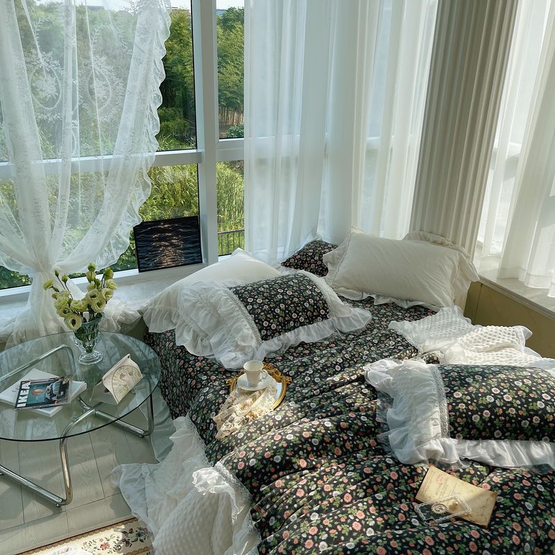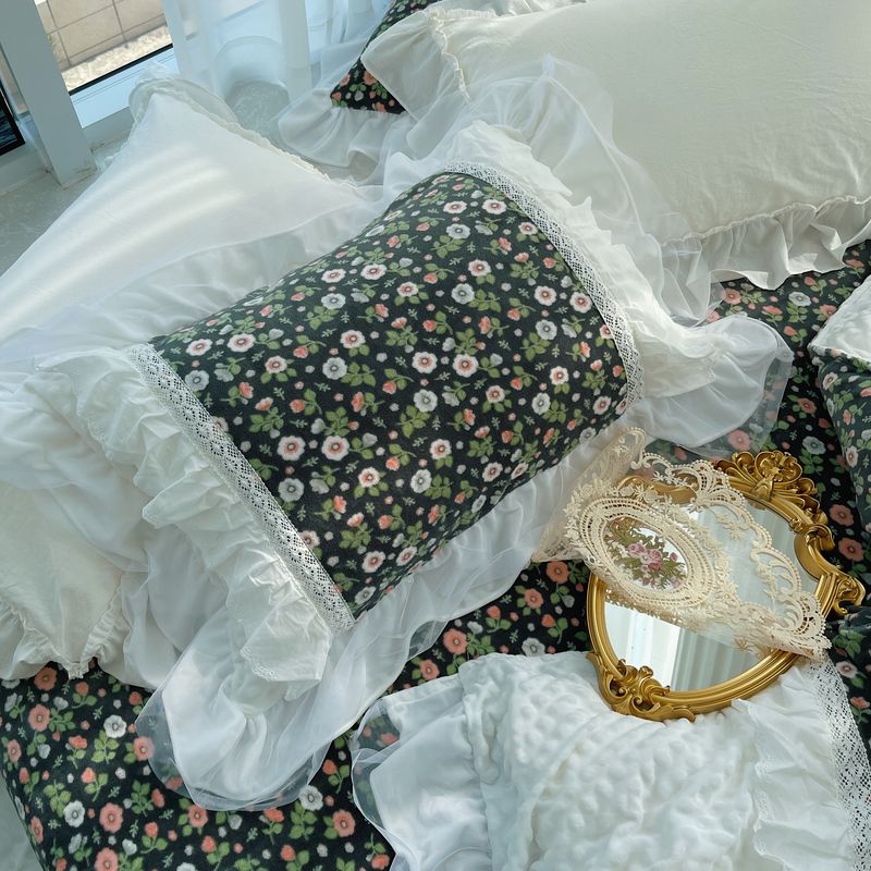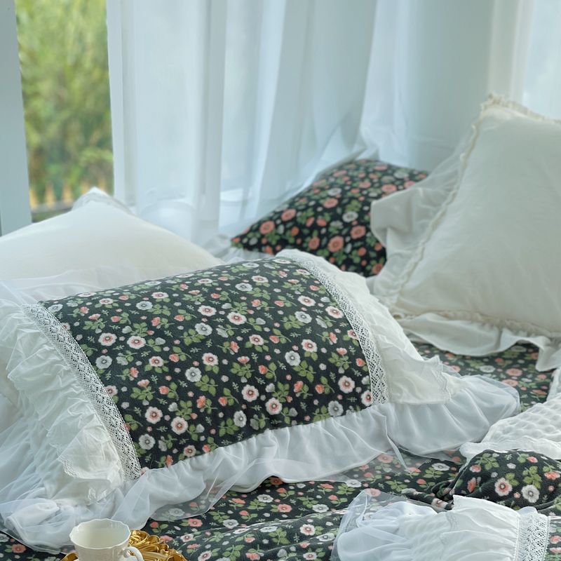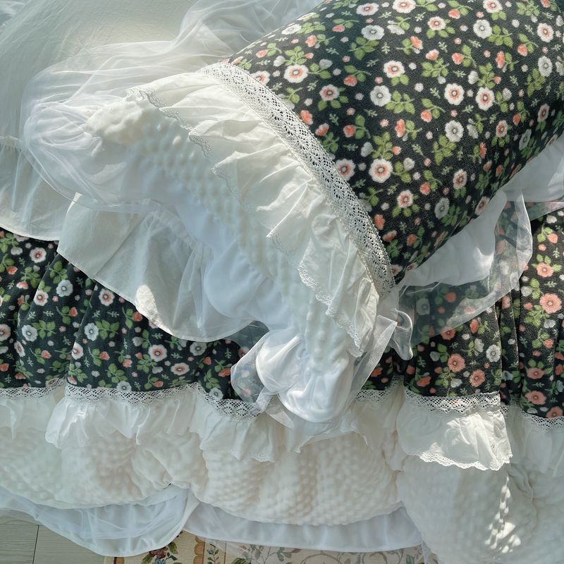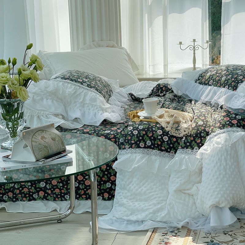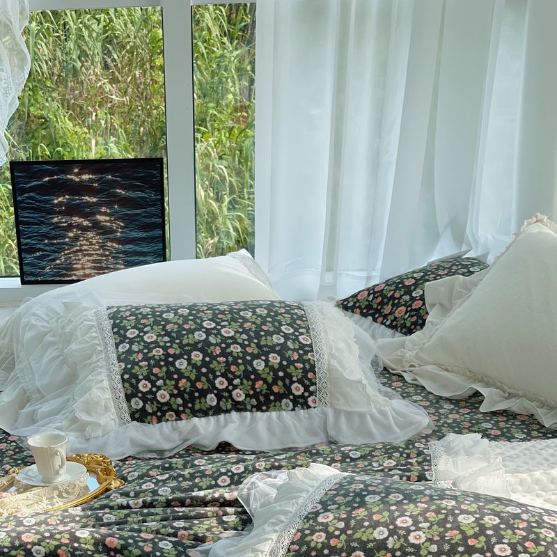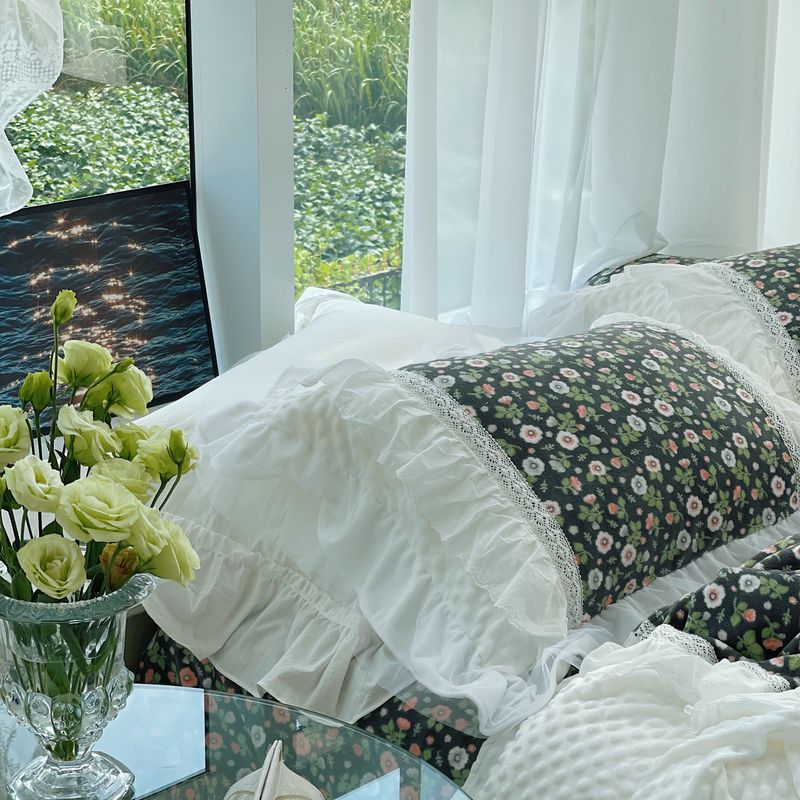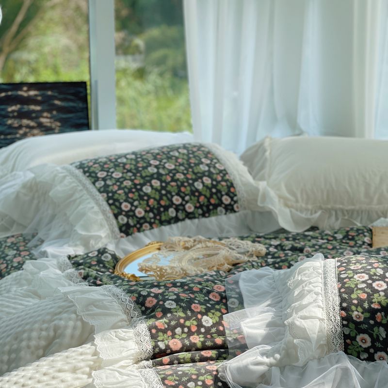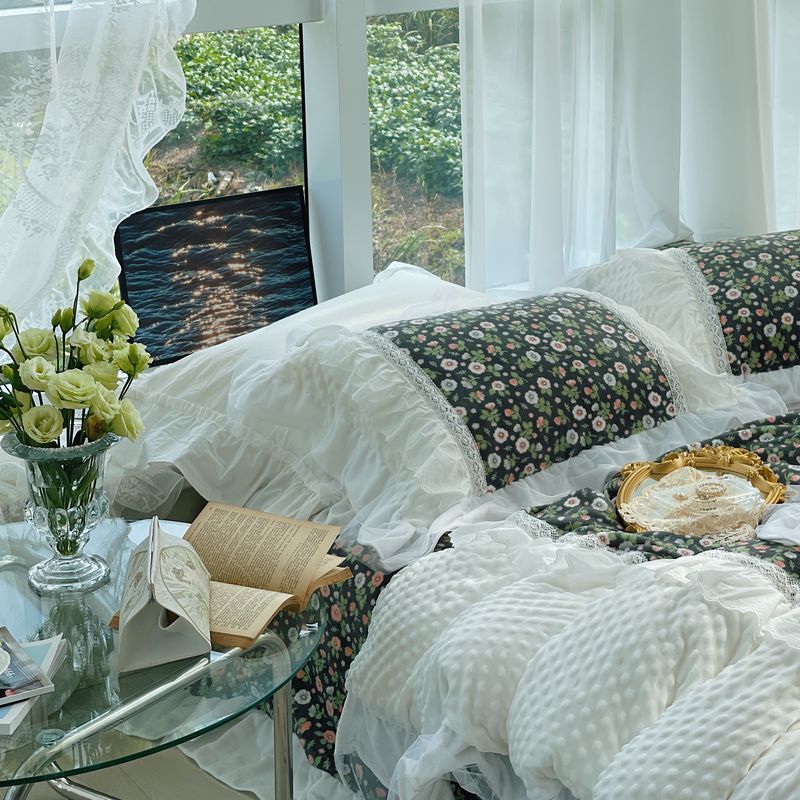 (总)嗨购 2022新款40支水洗棉刺绣花边四件套-复古花花,复古花花-粉,复古花花-绿,复古花花-紫