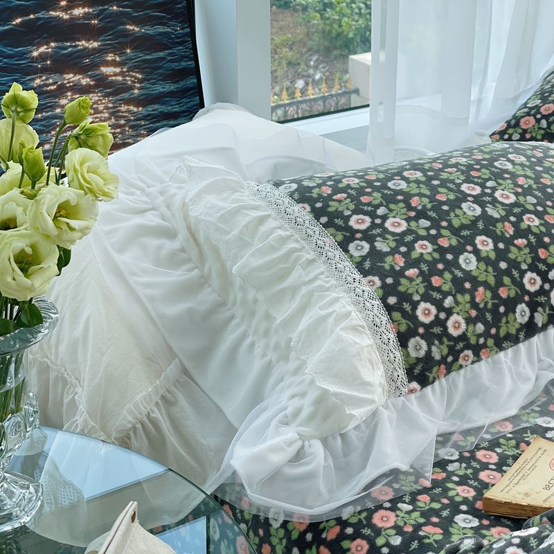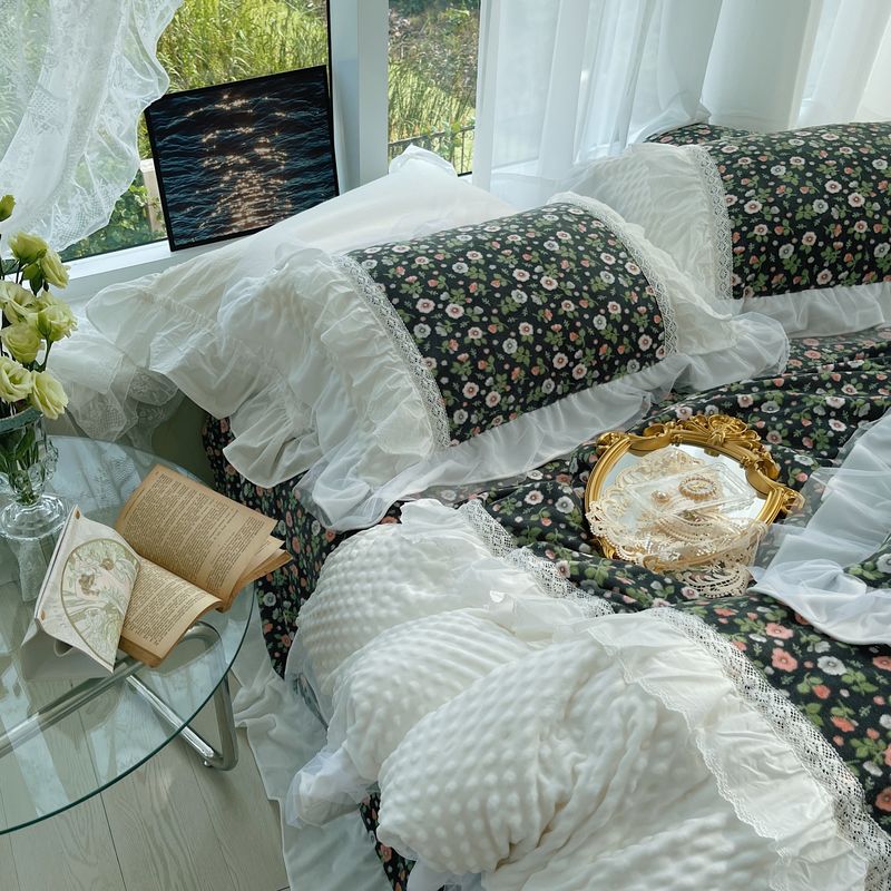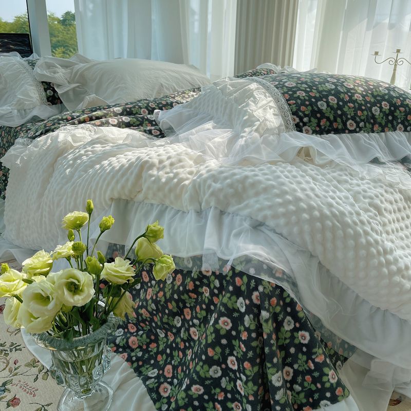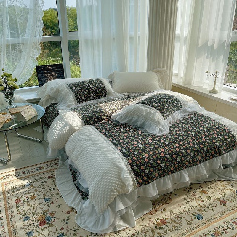 2021网红直播爆款秋冬碎花绒四件套牛奶绒四件套 墨蓝