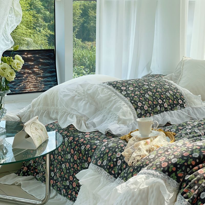 (总)嗨购家纺 2025新款亲肤舒适双层纱四件套-花期漫漫,花期漫漫