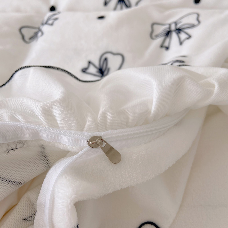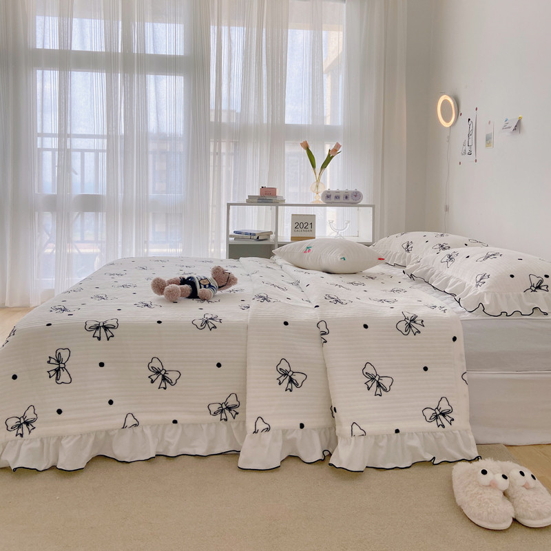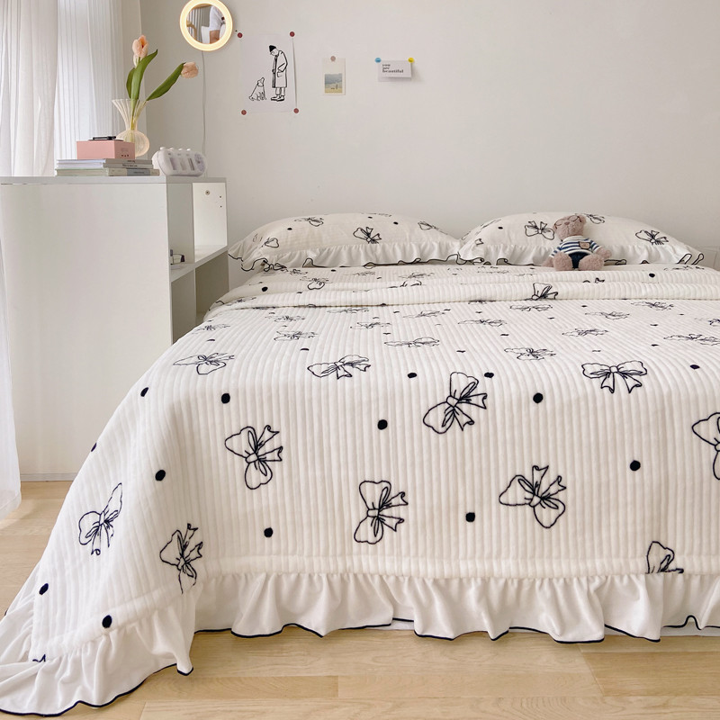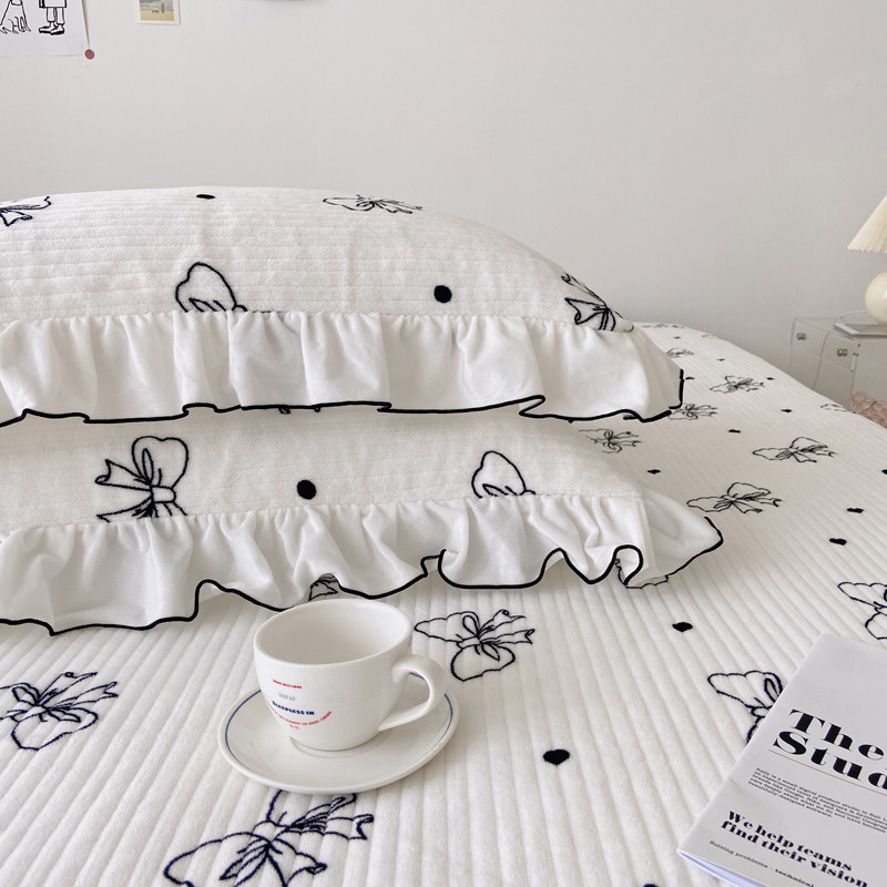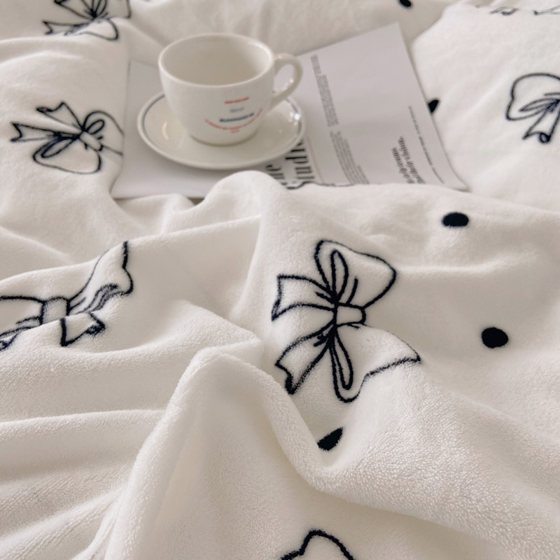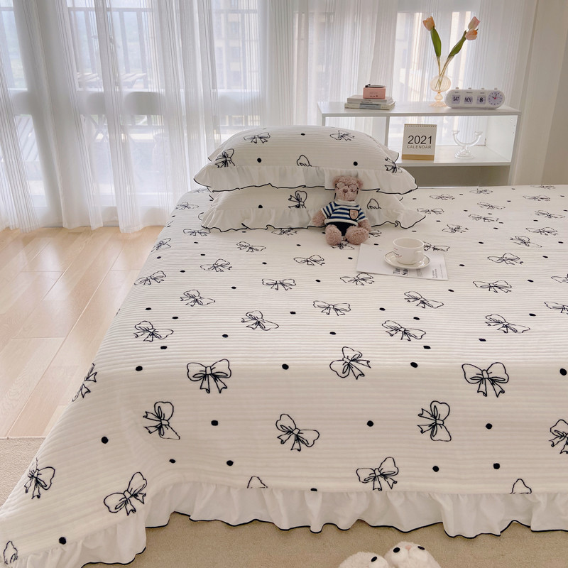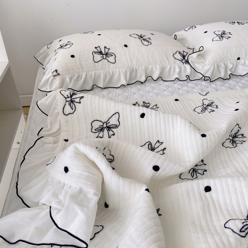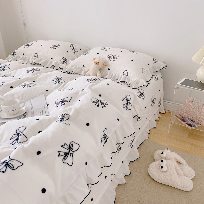 漫调 2021新款ins风波点黑白系列小清新牛奶绒床盖四件套 蝴蝶结