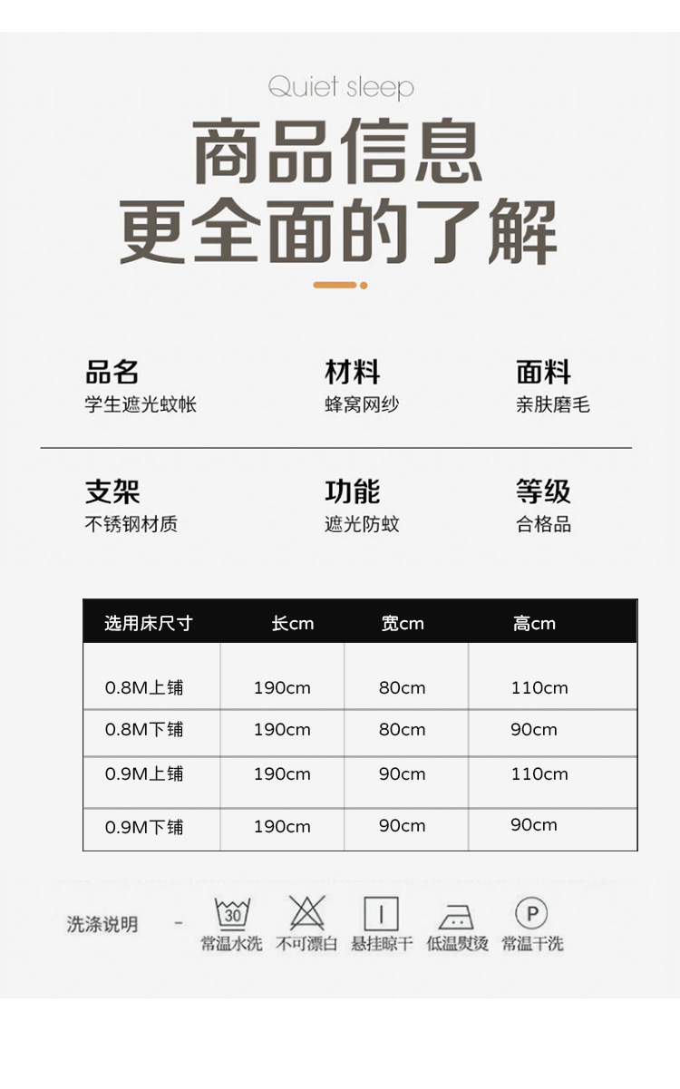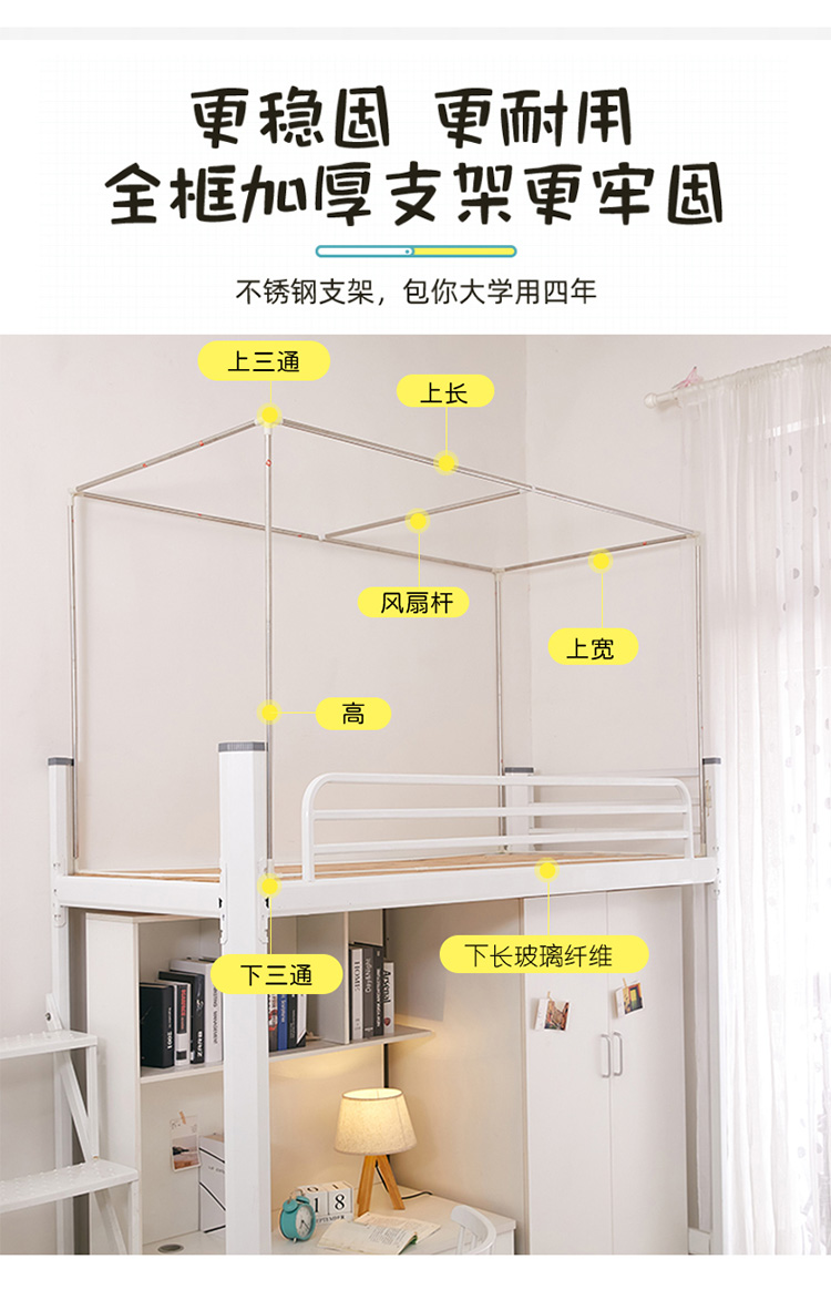 商品名称:安金蚊帐 2024新款加高加大90*200*130烤漆全伸缩支架99%涂层强遮光学生蚊帐床帘一体 逢考必过