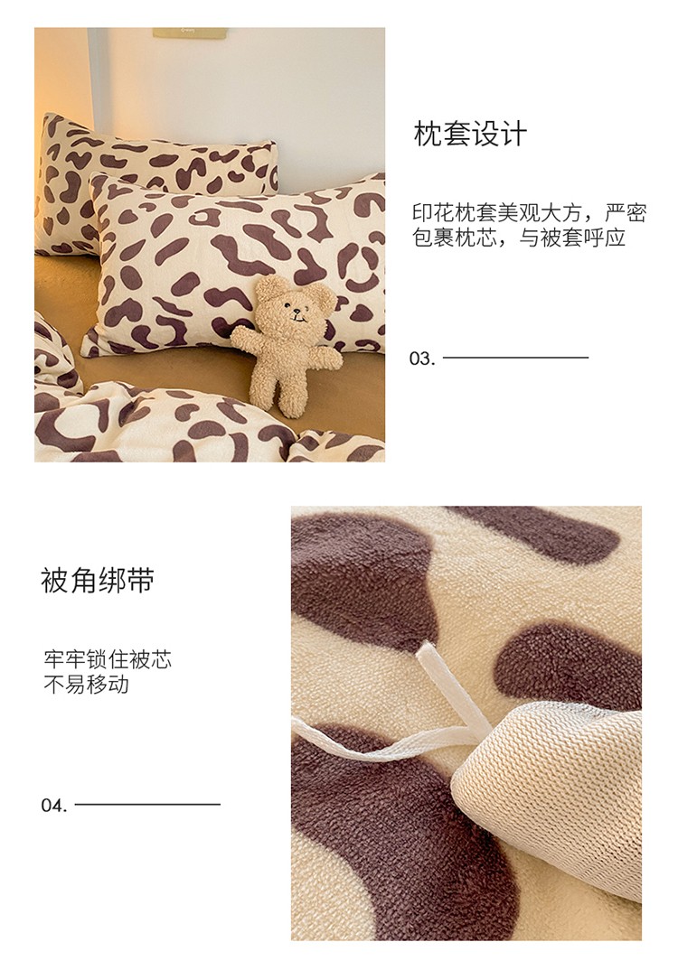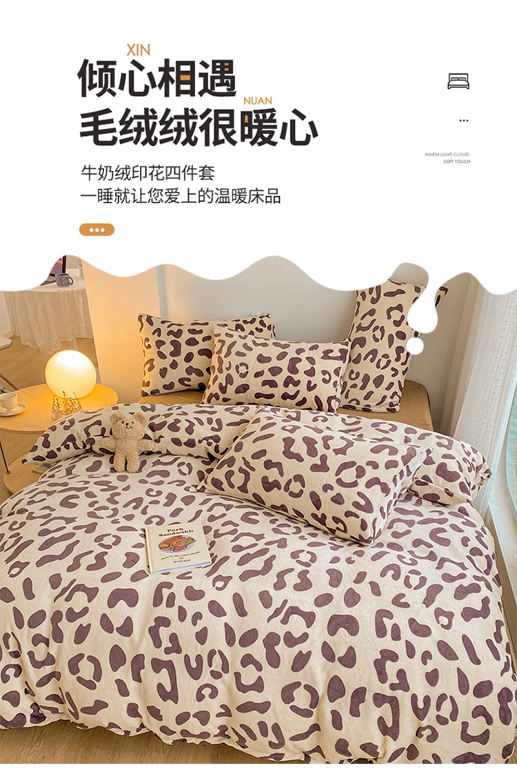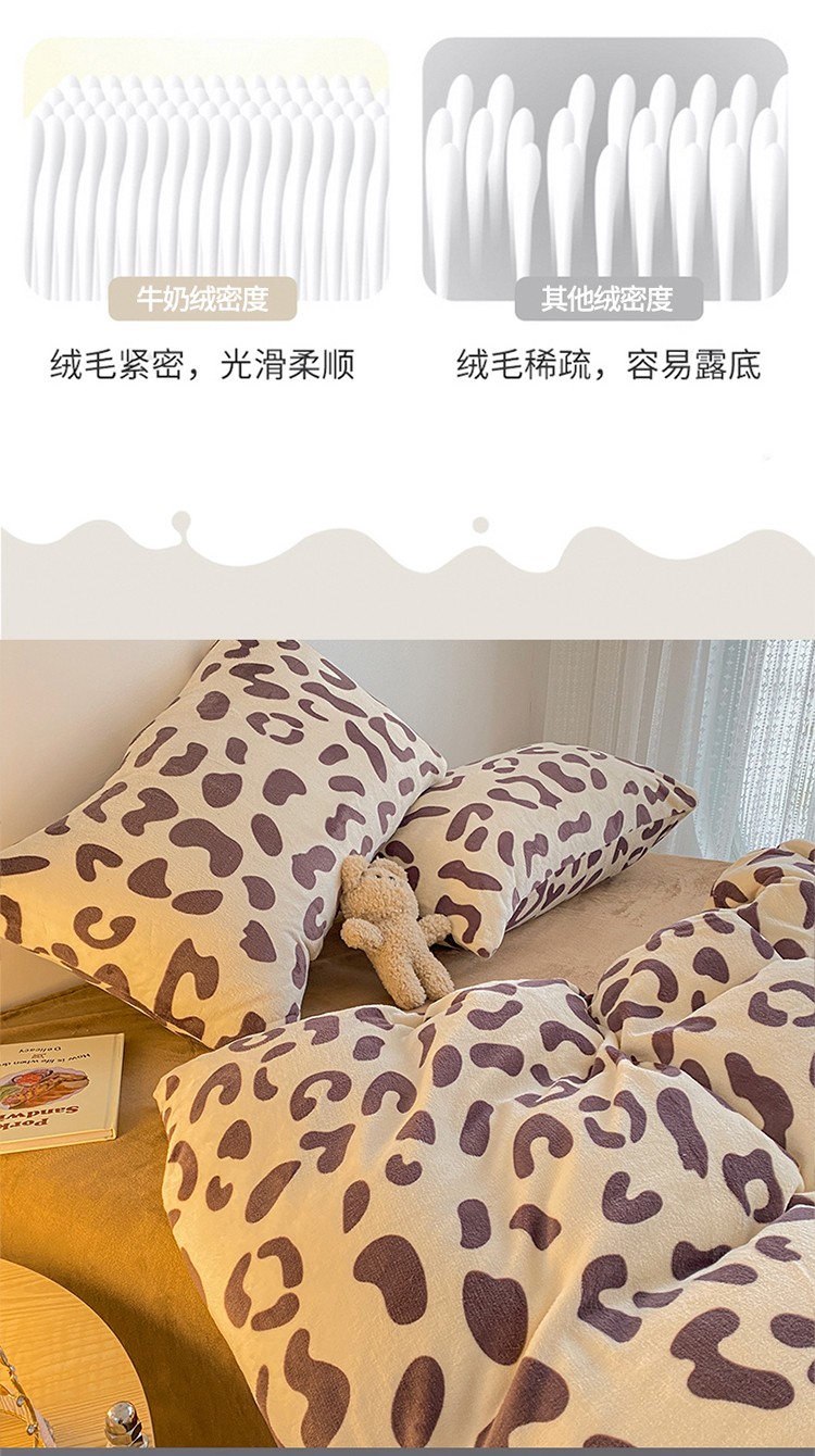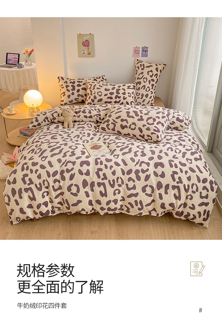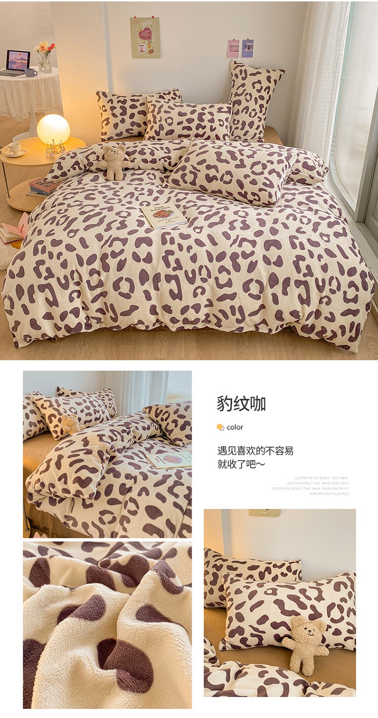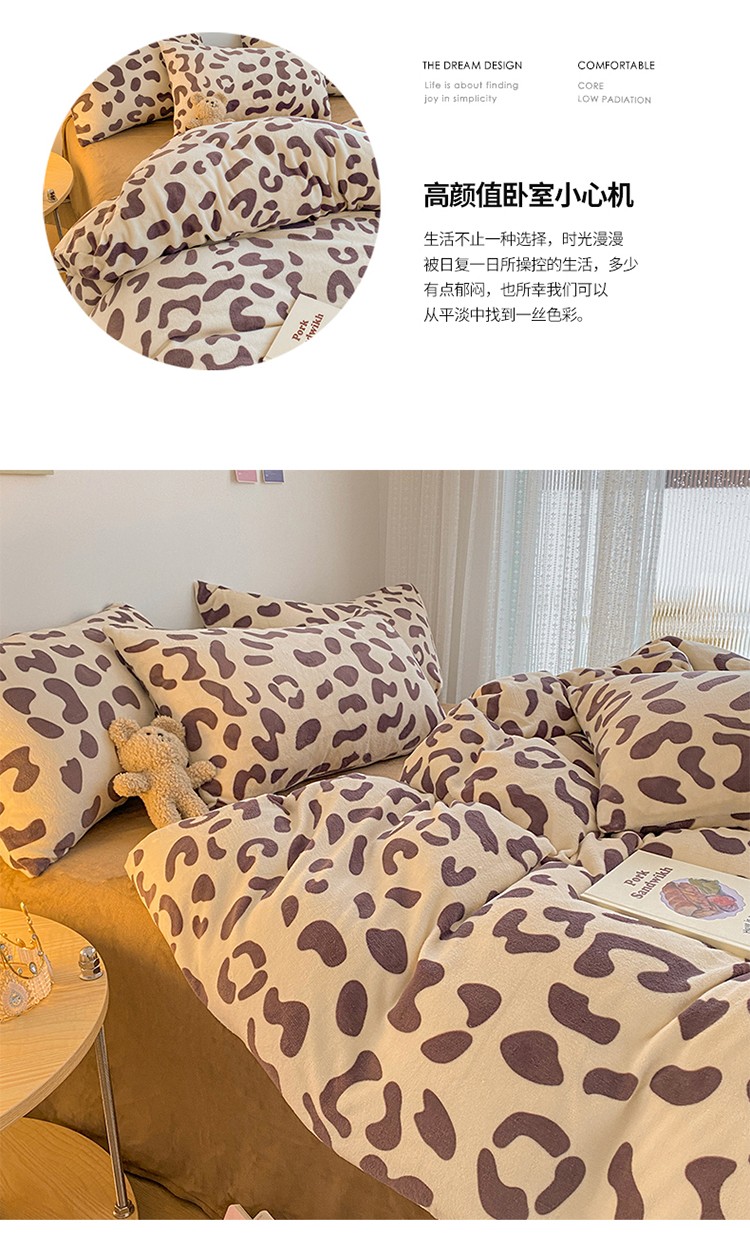 商品名称:雅居纺 2022新款印花牛奶绒四件套 豹纹咖