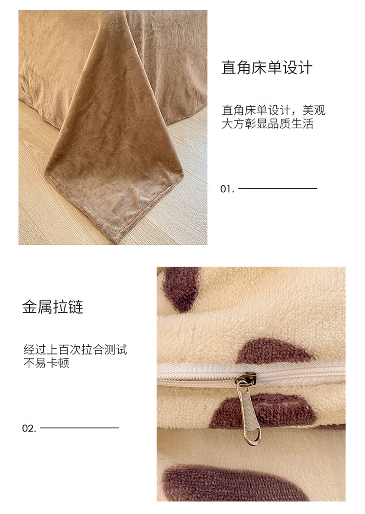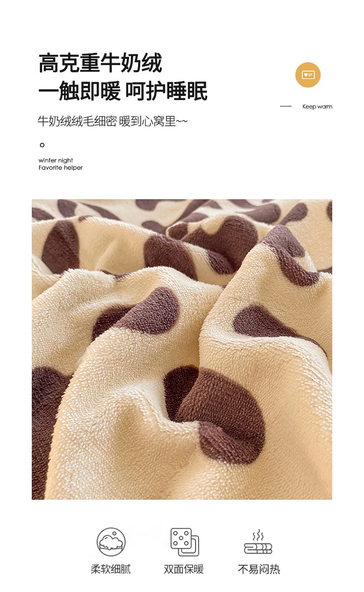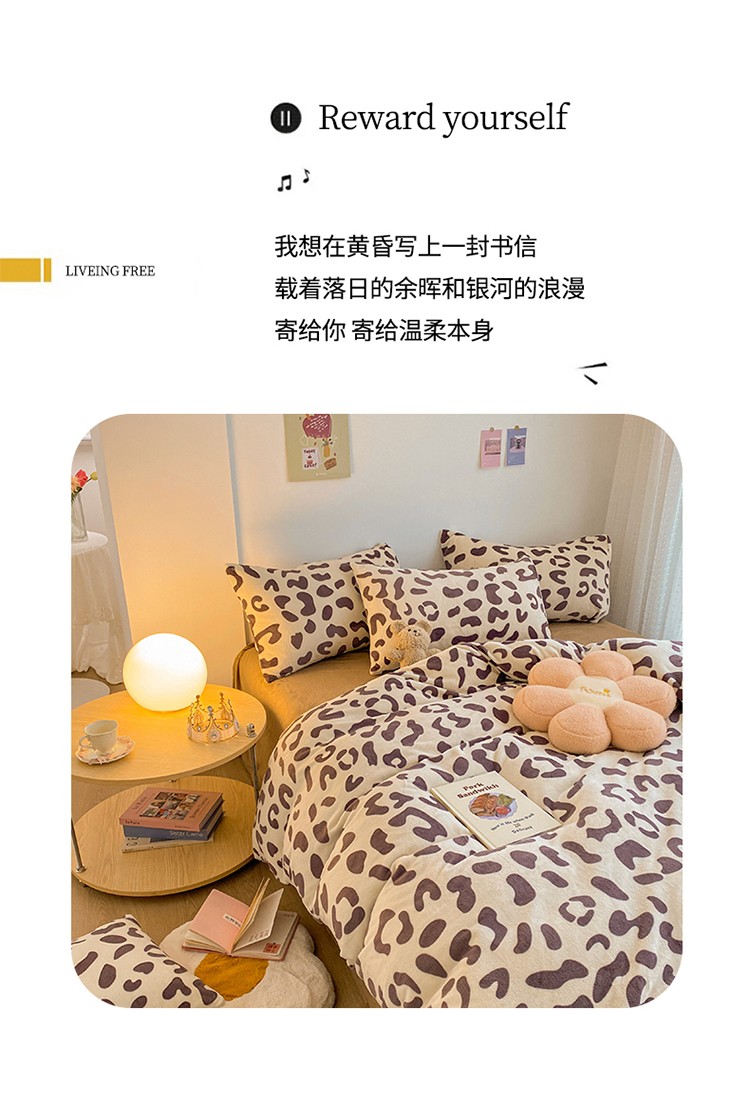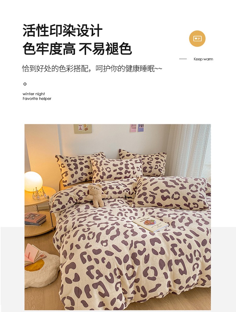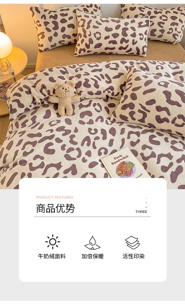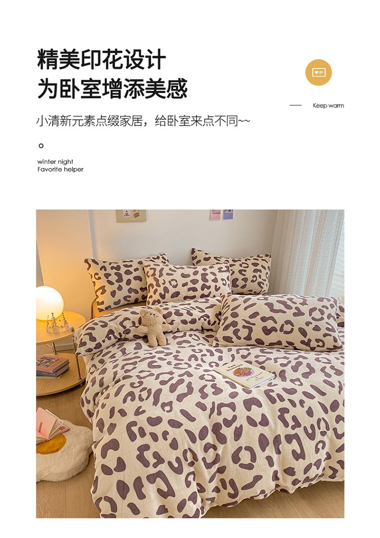 商品名称:雅居纺 2022新款印花牛奶绒四件套 豹纹咖