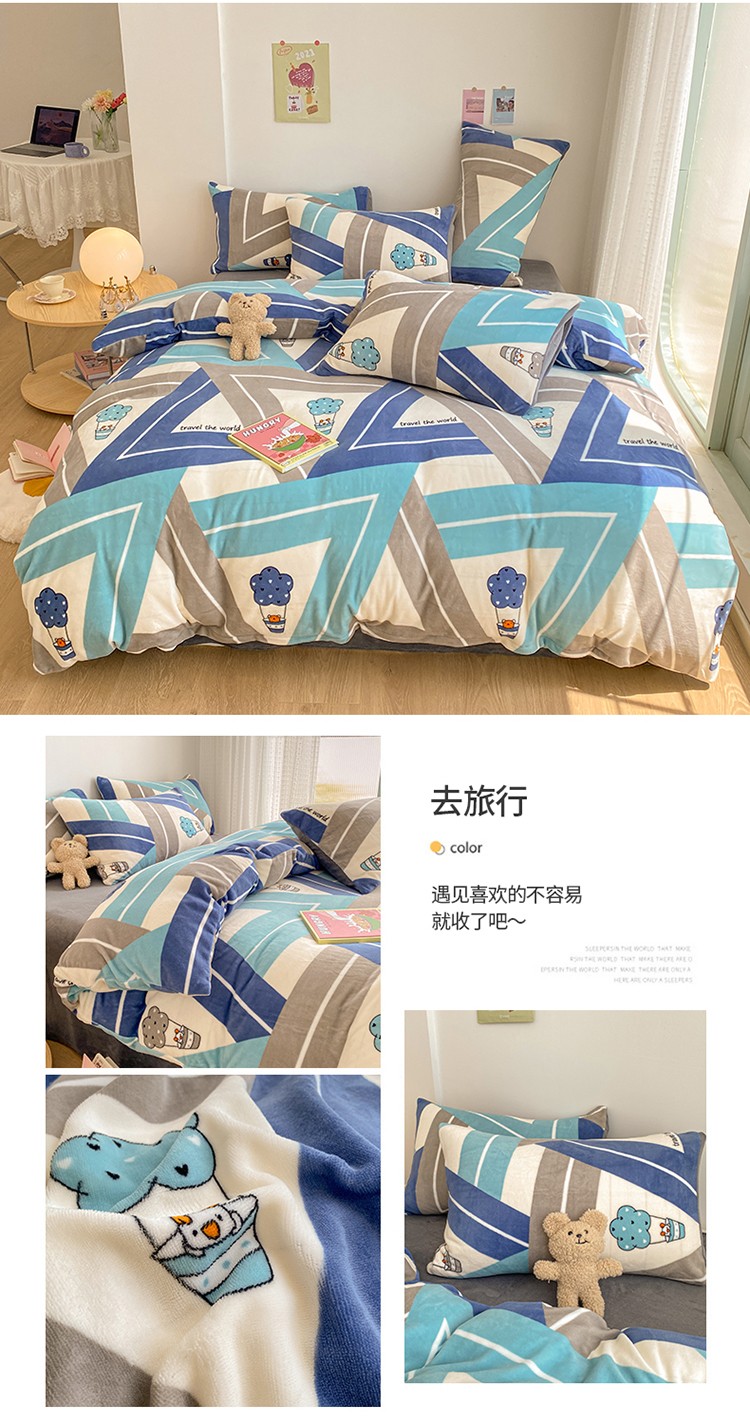 商品名称:雅居纺 2022新款印花牛奶绒四件套 去旅行