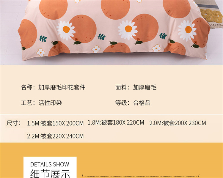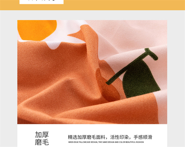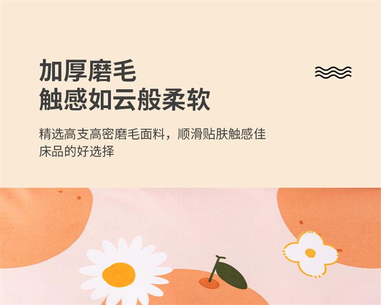 商品名称:佑佳家纺 2024新款磨毛印花植物羊绒单被套 爱媛甜橙-奶油桔