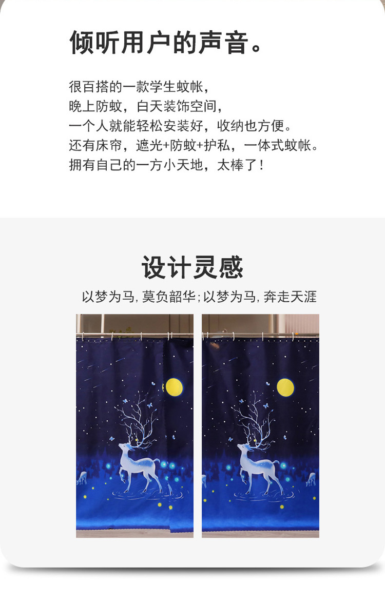 商品名称:迷仙巢家纺 2021新款落地学生蚊帐 LD月光鹿