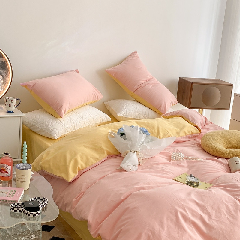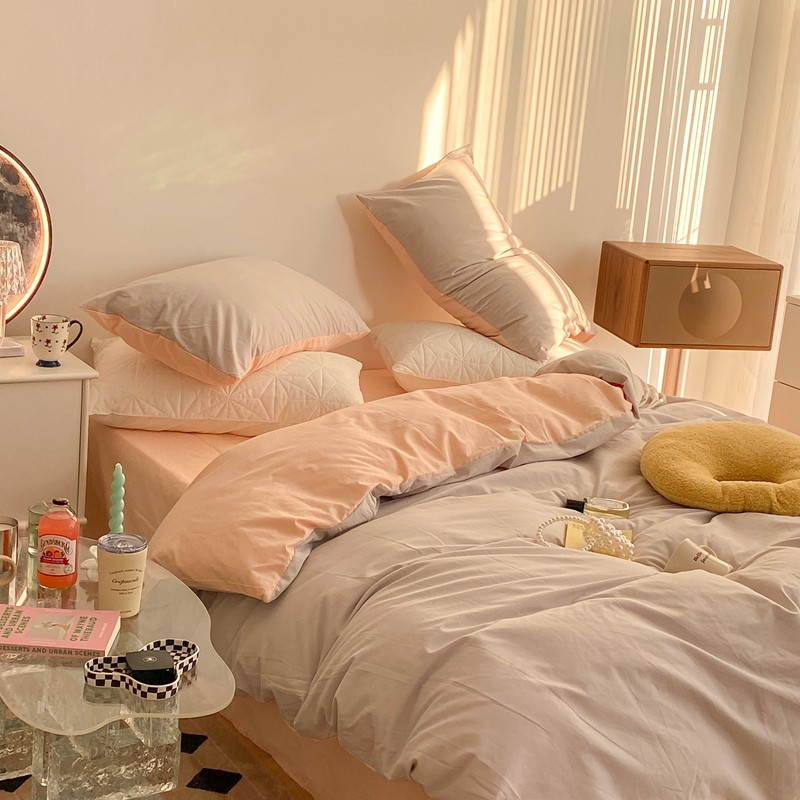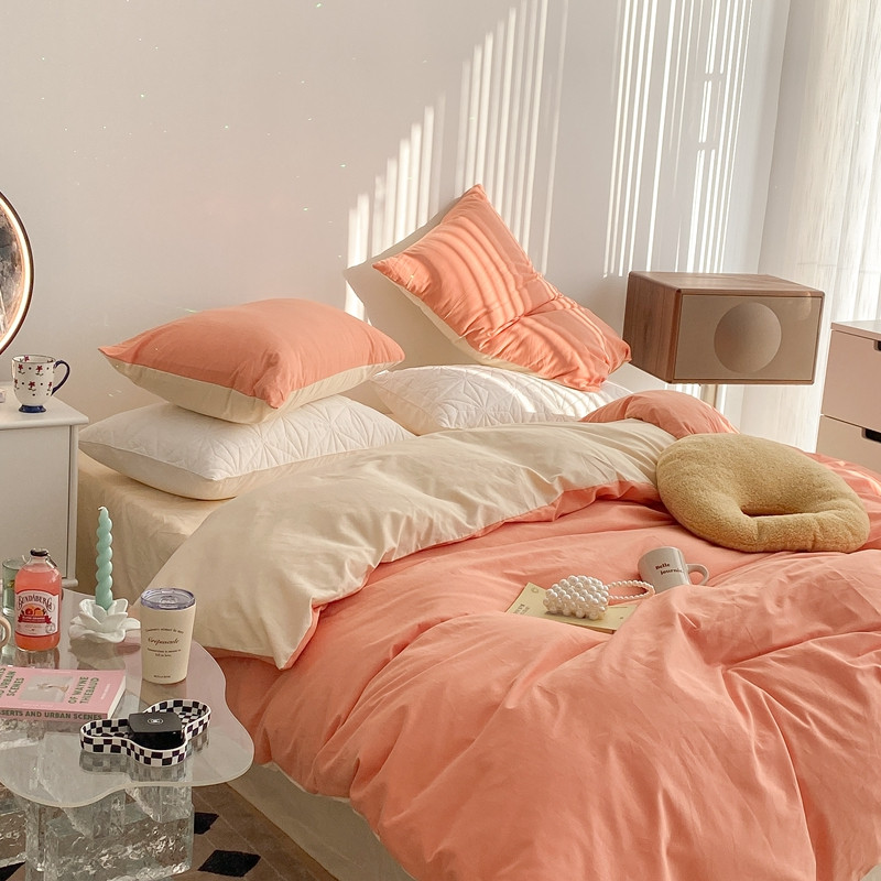 (总)昔可家纺 2023新款双层纱枕头绑带版四件套,橙花,粉粉馥芮,莫奈紫,英国梨