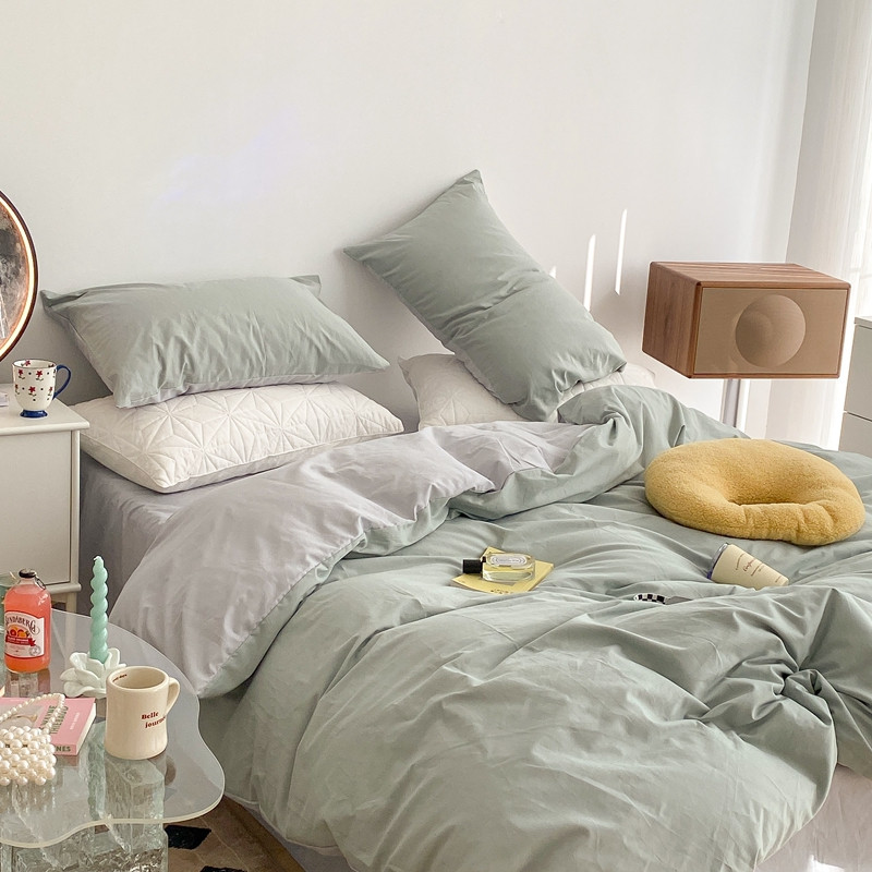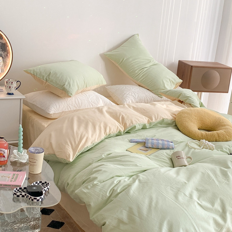 (总)昔可 2023新款全棉ins格子混搭系列四件套,ins简约绿格,粉蓝格,开心果格,学院格纹,粉绿格,海盐兰格,黄绿格,夏日蓝条,芝士黄条,紫芋泥芝士格