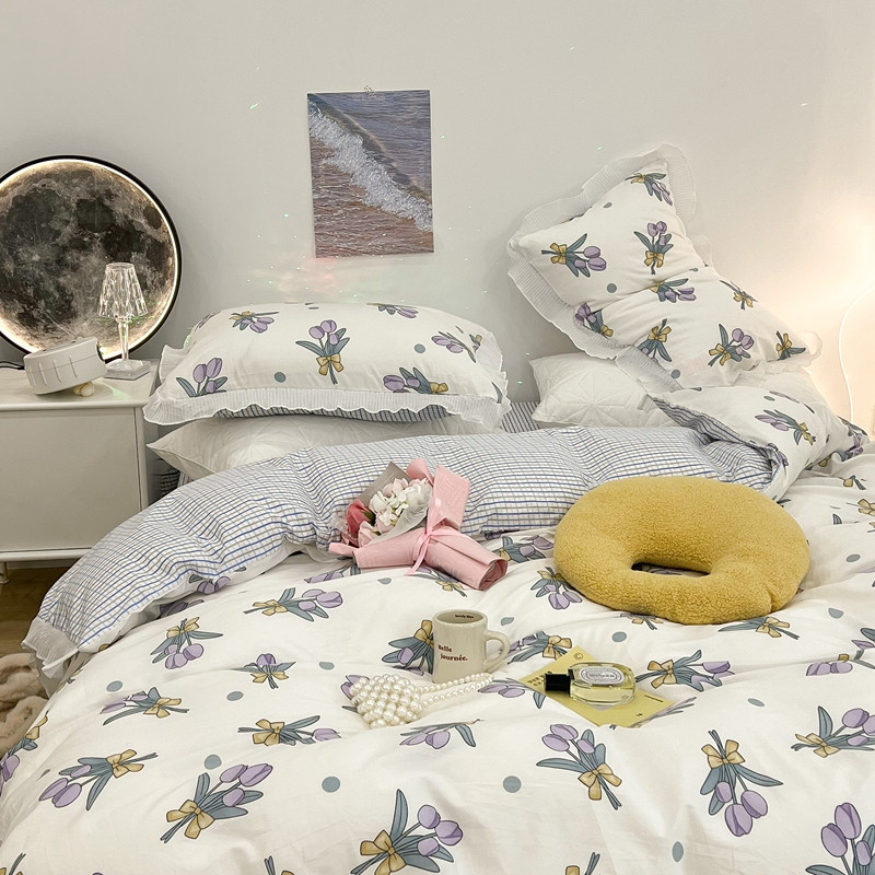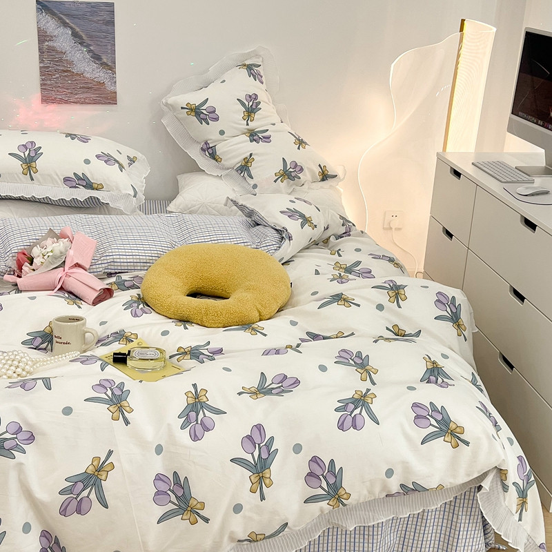 商品名称:昔可家纺 2022新款13372全棉百褶花边四件套 紫郁金仙子