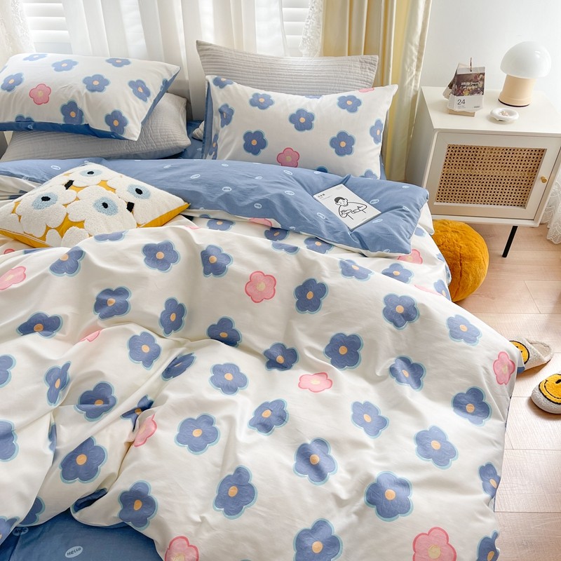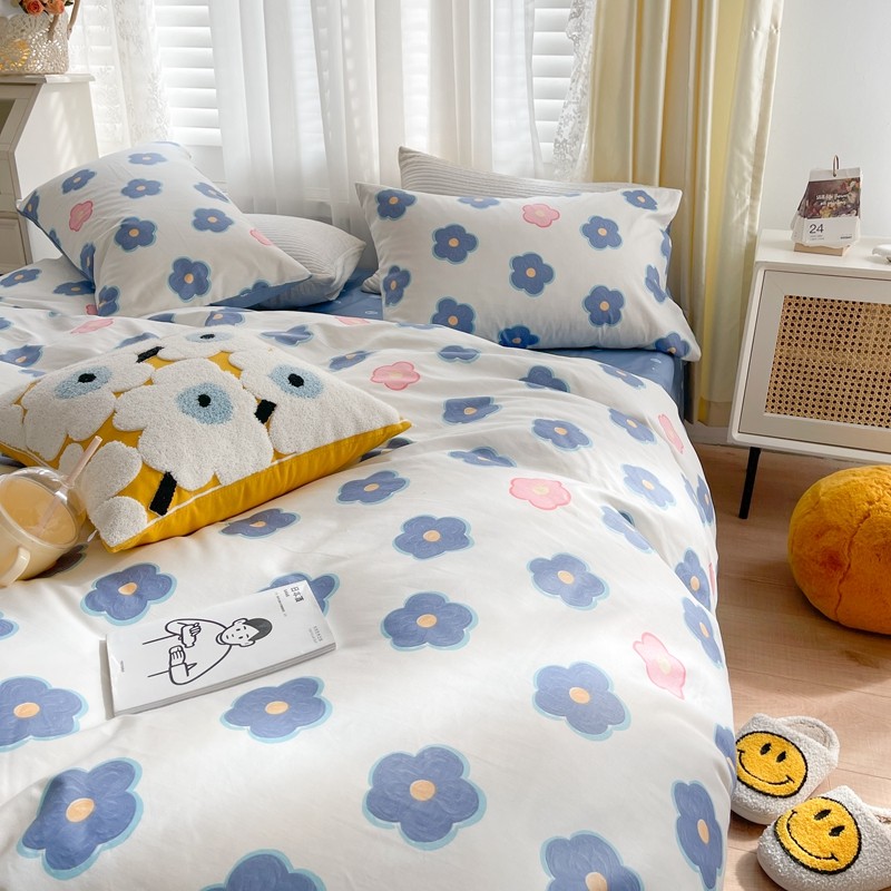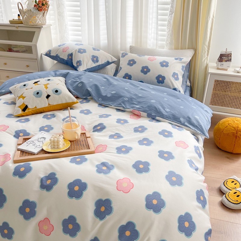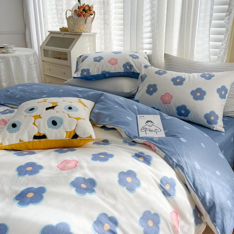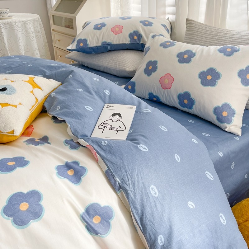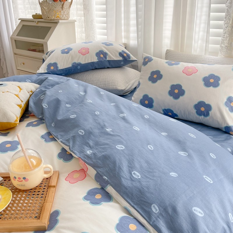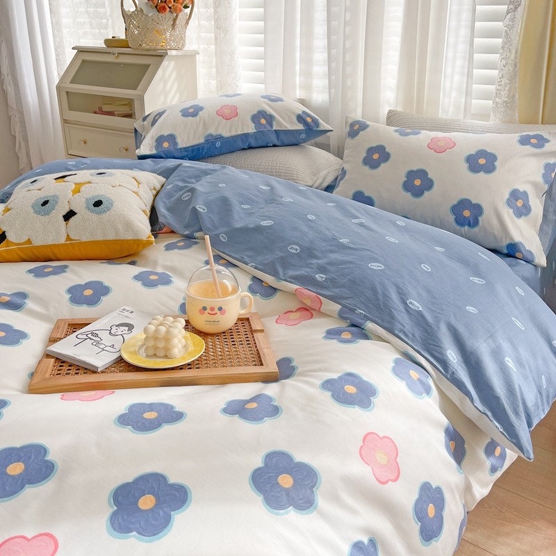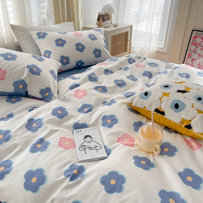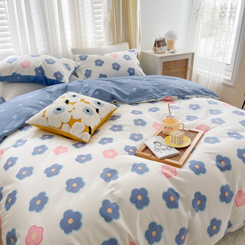 商品名称:顾里 2022新款13372全棉四件套-韩系全棉影棚图 蓝恋花