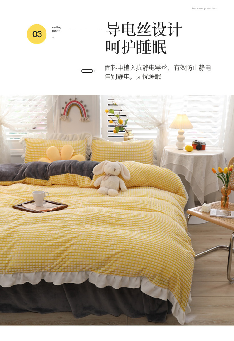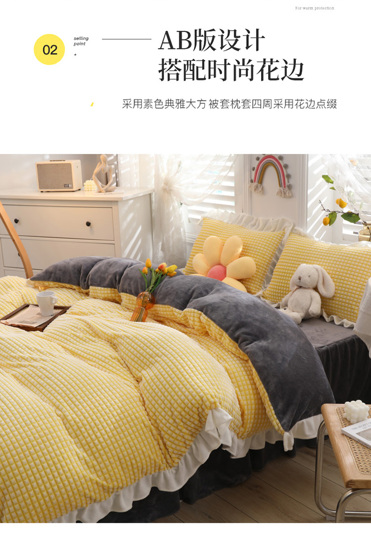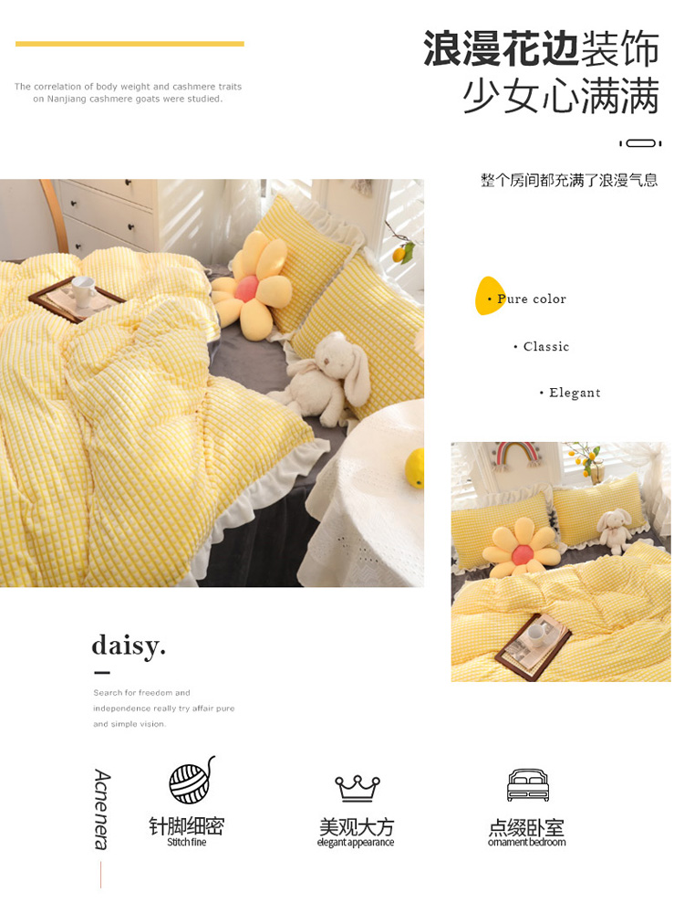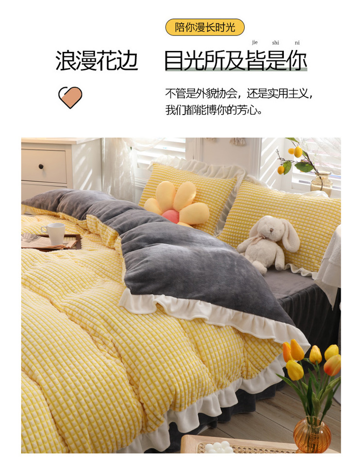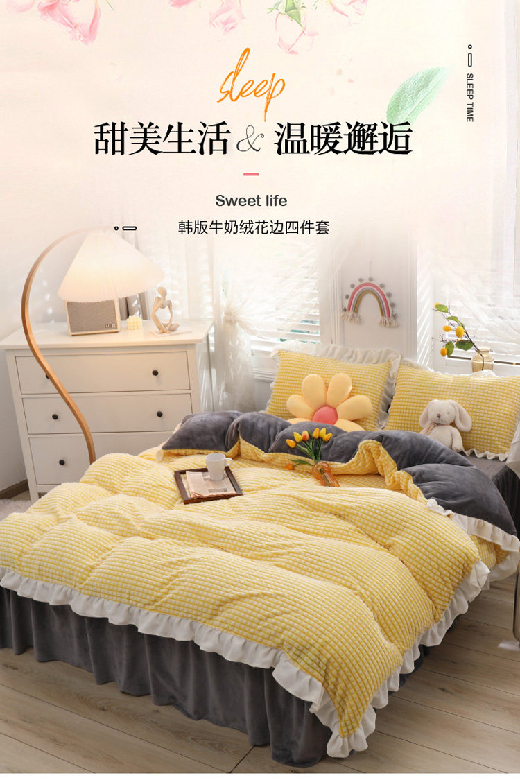 当前位置: 91家纺网 > 商品网购 > 床品套件 > 四件套 > 牛奶绒四件套 > 慕澄 2022新款牛奶绒剪花荷叶边四件套实拍图 满天星